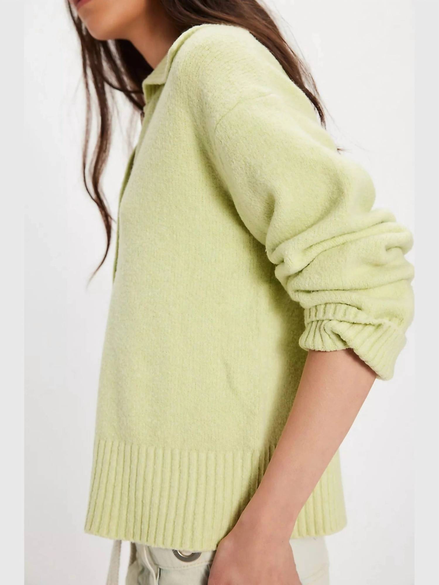 This cardigan will be a sweater-rotation favorite. Introducing the Trading Up Polo Sweater by Free People, a cozy addition to your wardrobe in elegant Matcha Melange. With long sleeves and a classic polo-inspired collared neckline, this sweater exudes a relaxed fit complete with charming tortoise shell button closure. Crafted from a cotton-blend knit, it features drop shoulders for added comfort and style.
