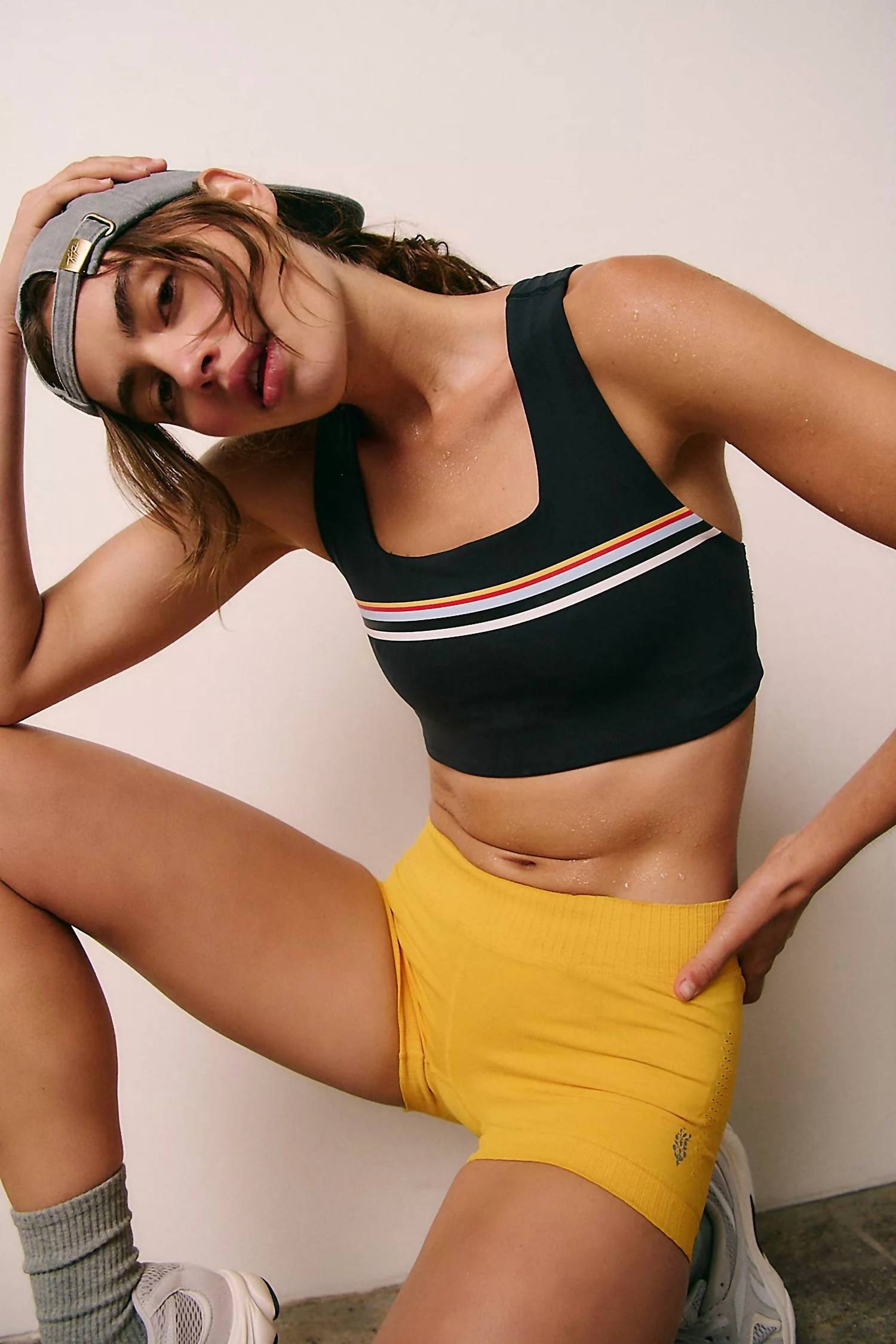 Introducing the Win Win Sports Bra by Free People, designed for high-impact support with a chic Stripe Logo pattern. This long-line sports bra features a flattering square neck and V-back wide straps, ensuring all-around compression and comfort. Crafted from a composition of 38% Elastane and 62% Polyamide, it offers a soft and smooth fabrication that dries quickly. Care: Hand wash. Perfect for summer athleisure and workout sessions.
