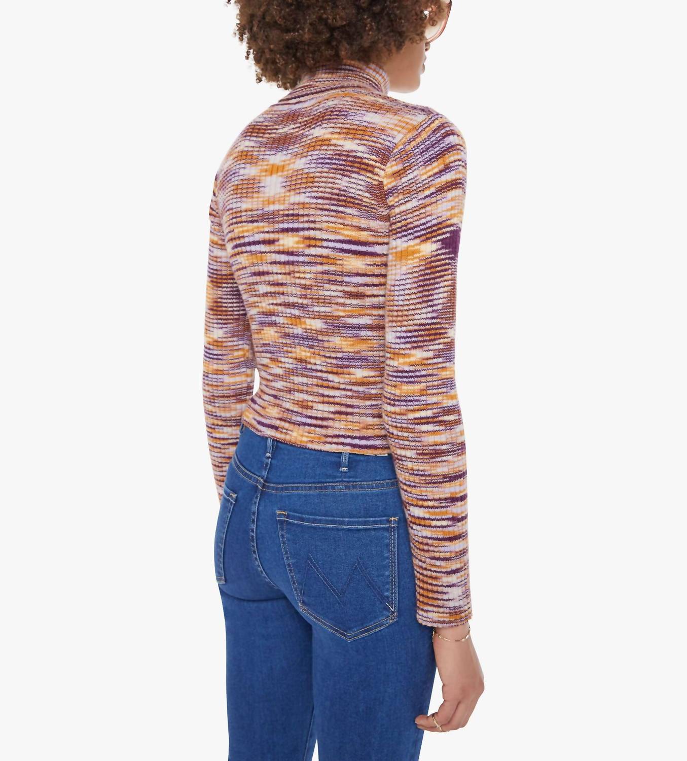 A classic staple that every closet needs. Elevate your wardrobe with the Street Collar Top by Mother, a striking piece from the Fall 25 capsule collection. The top boasts long sleeves and a classic turtleneck with a narrow fit, crafted from a luxurious blend of merino wool and baby alpaca. Its distinctive graphic stripe print in orange, maroon, and white is achieved through a space-dye technique, ensuring each piece is exquisitely unique. Designed without pockets for a streamlined silhouette, this imported top radiates 1970s grit and glamour, with a convenient pull-on closure.