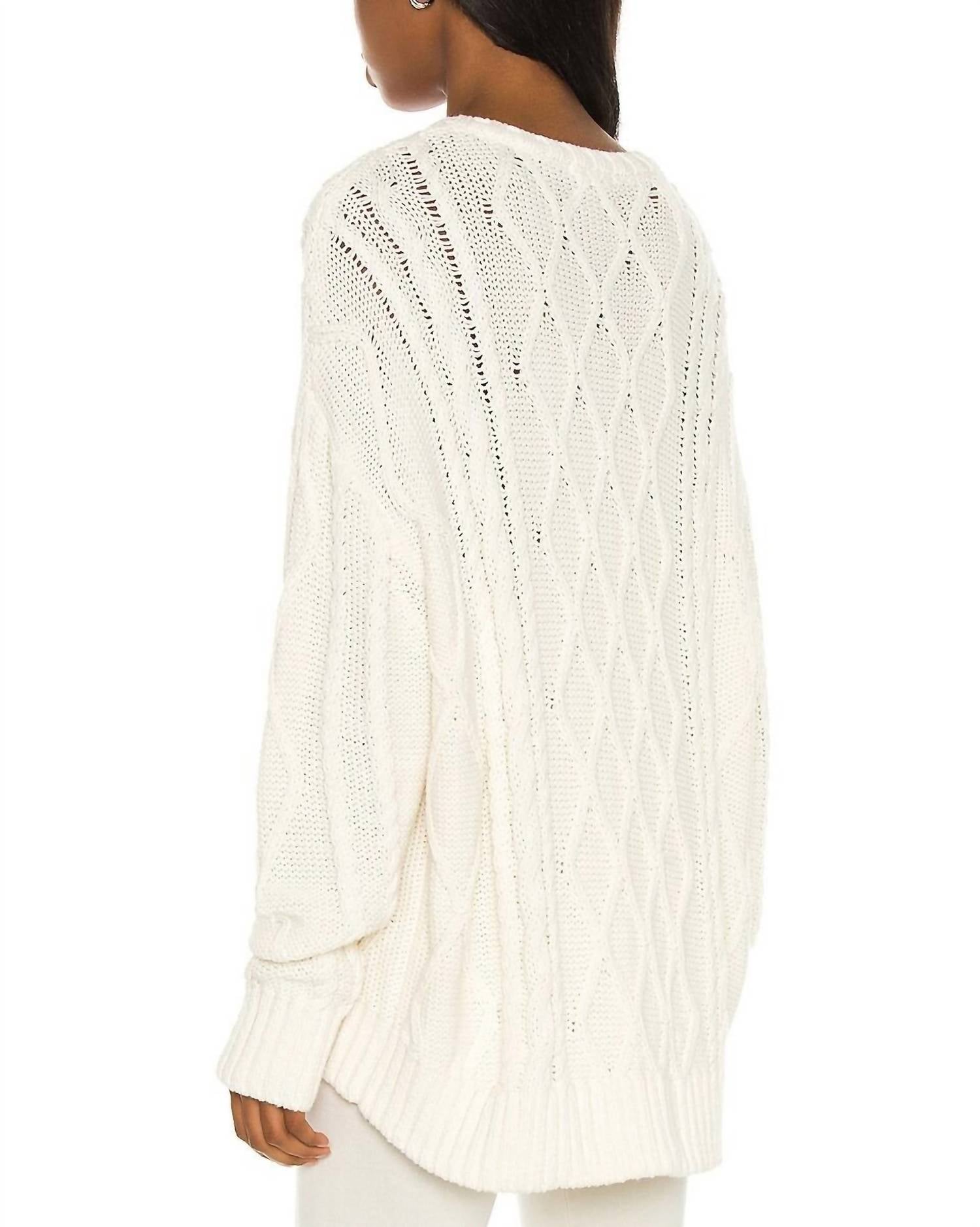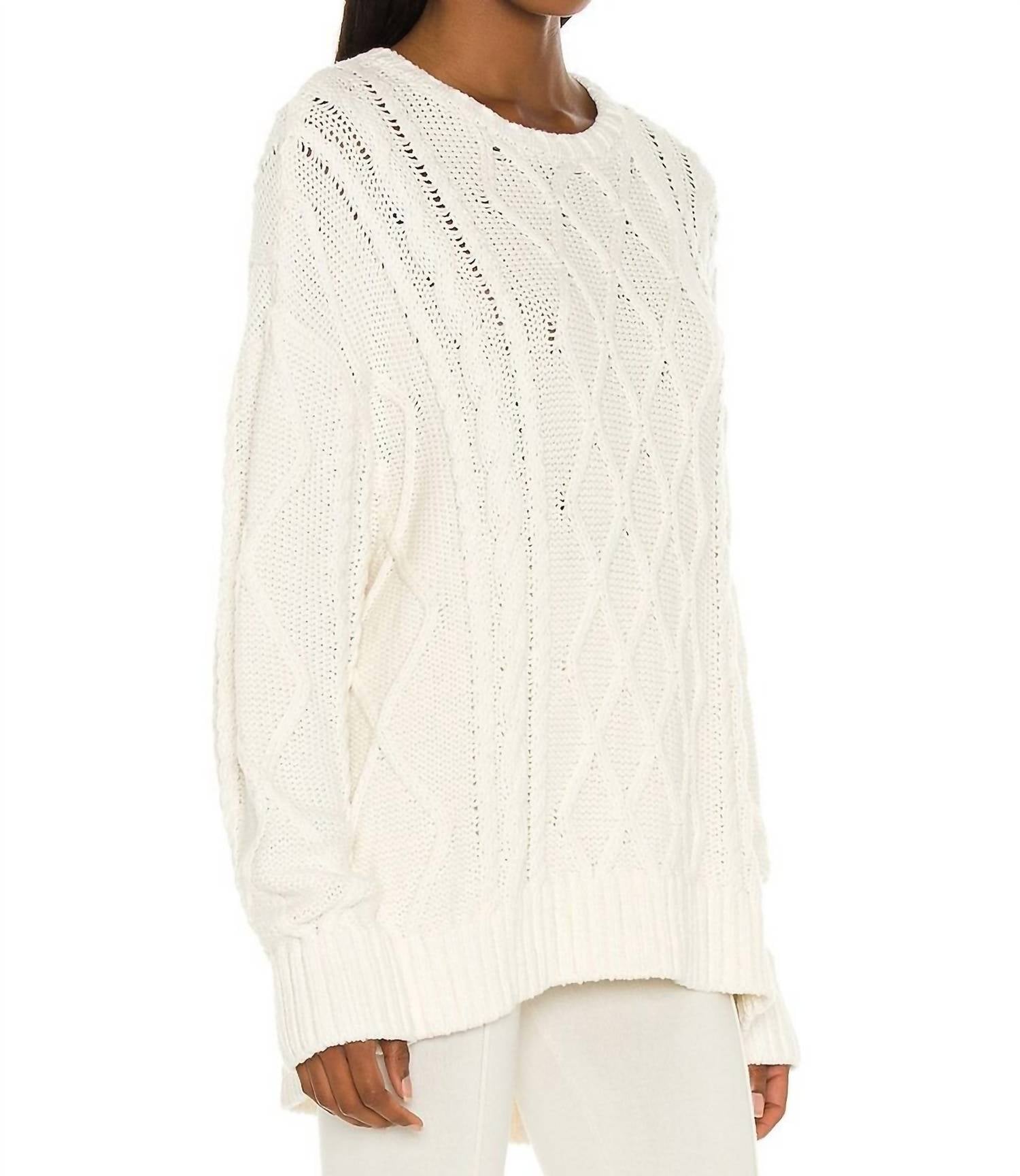 Stay warm and stylish in this versatile and effortlessly cool knitwear staple. Wear it alone or layered, it's the perfect sweater for the season and you'll wish you had it in every color. Introducing the Day To Day Sweater by Show Me Your Mumu, an oversized crewneck designed for both comfort and style. This elegant piece features long sleeves and is crafted from a soft cotton blend with a textured, intricate cable knit pattern, perfect for layering. Made in China with a pull-on closure, it offers a minimalist vibe ideal for dinner parties or Thanksgiving gatherings. Care for this staple by tumble drying as needed.