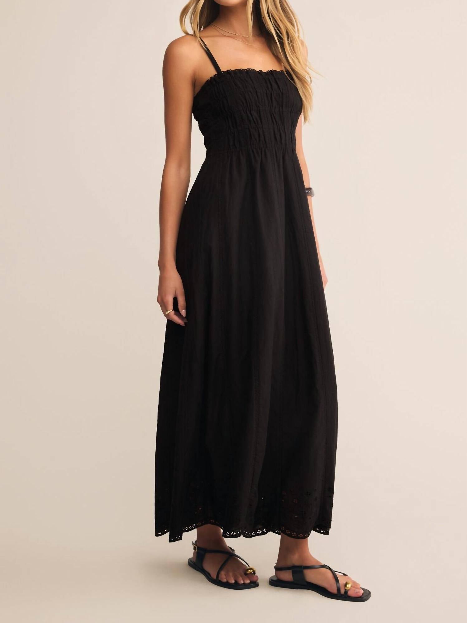 The perfect length dress does exist. Elevate your Summer style with the Dani Embroidered Midi Dress by Z Supply, perfect for engagement parties or Easter celebrations. This grinning colored dress features a chic square neck and sleeveless design with adjustable spaghetti straps for a custom fit. It combines functionality with elegance through an elastic waistband and a comfortable A-line silhouette, rendered in breathable 100% cotton with a heavy soft wash. Closure type: Pull on. For easy care, simply machine wash.