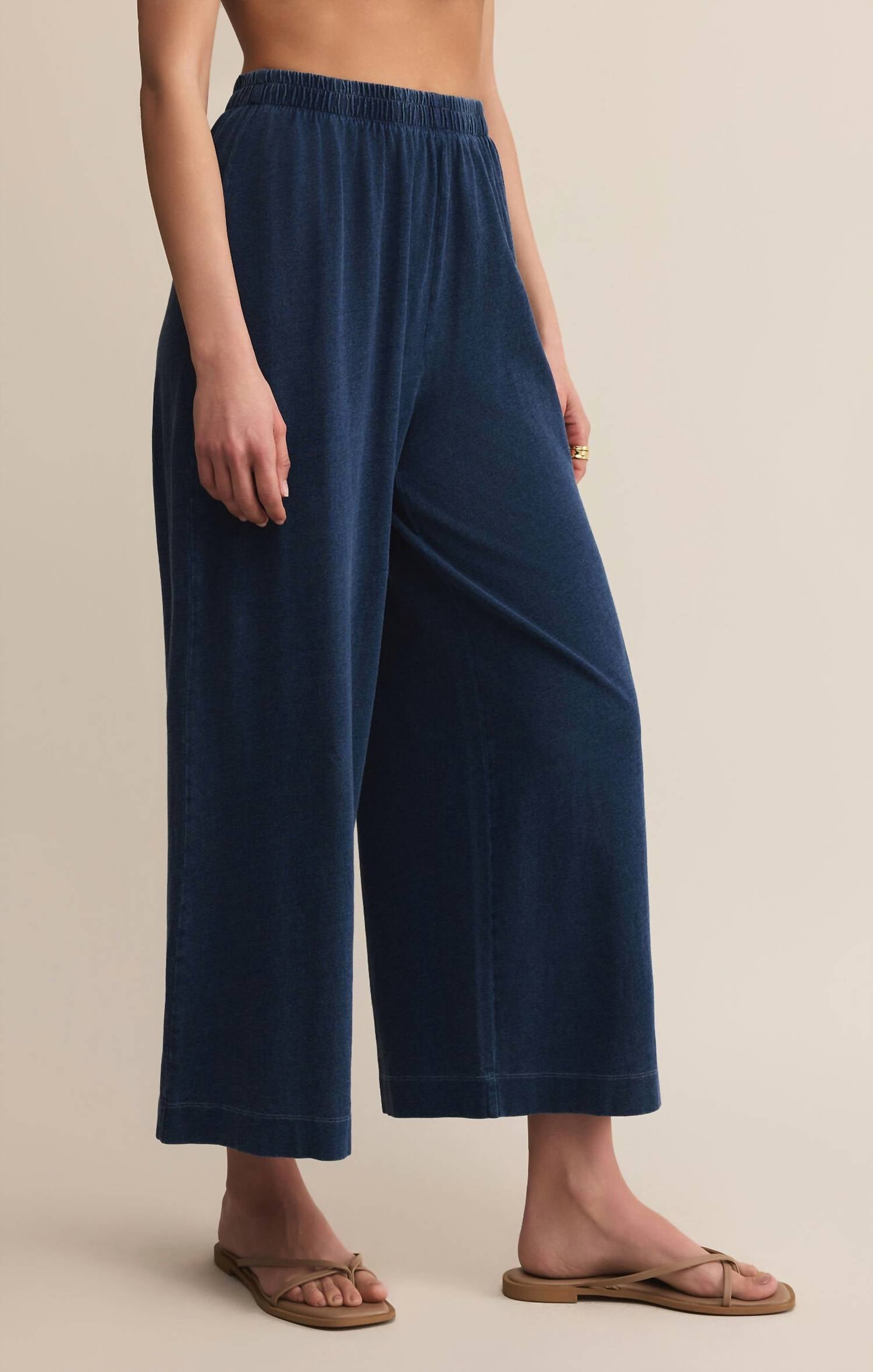 Discover the perfect blend of style and comfort with the Scout Jersey Denim Pant by Z Supply. Tailored for women, these wide-leg pants in a solid indigo are crafted from 100% Cotton, making them lightweight and ideal for a relaxed fit. Featuring a high-rise design and an elastic waistband, they include practical side seam pockets for added convenience. With a pull-on closure and a 26-inch inseam, care for these versatile pants is simple with machine wash instructions.