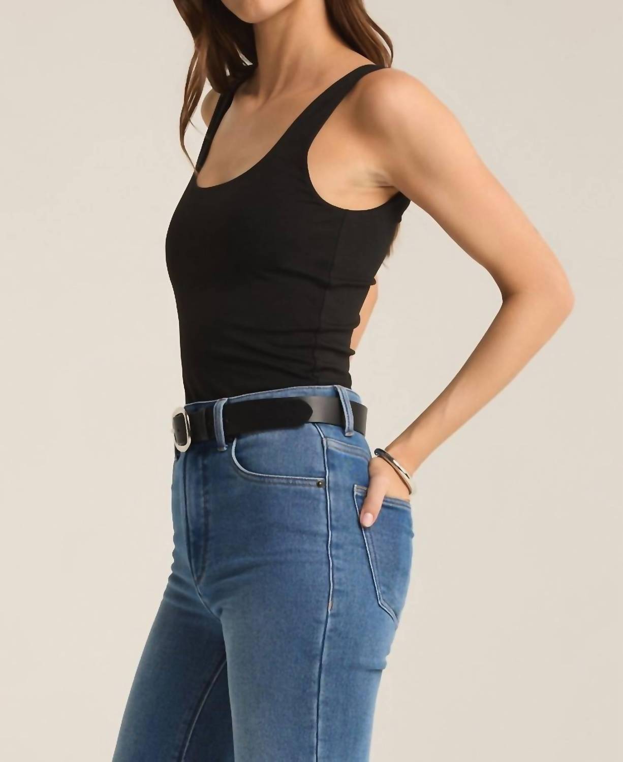 Who doesn't love a good bodysuit? Elevate your wardrobe with the Vienna Sleeveless Bodysuit by Z Supply, a chic essential in a versatile black hue. This piece boasts a fitted silhouette, scoop neckline, and wide straps, offering a refined sleeveless design. Composition: 80% Nylon, 20% Spandex crafted as a midweight soft jersey knit. Closure: Snap button closure. Care: Machine wash, line dry recommended.