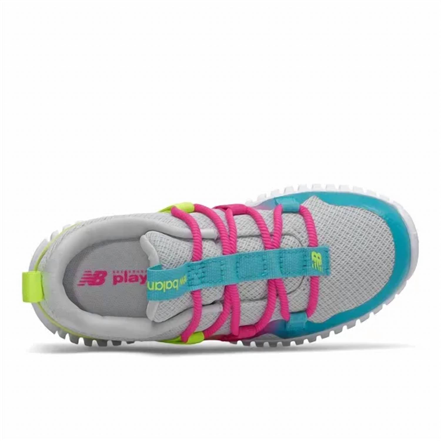 Introducing the New Balance Kids Playgruv Sneaker, an athleisure essential designed for little feet in vibrant Gray/Pink. This sneaker features a breathable mesh upper with a unique bungee lace system for a secure fit, complemented by a round toe and flat heel for comfort during fitness activities. Engineered for spring ventures, it supports active kids with a flexible sole, making it perfect for workout and play. Designed in a wide fit, this unisex sneaker combines style and functionality for an adventurous spirit.