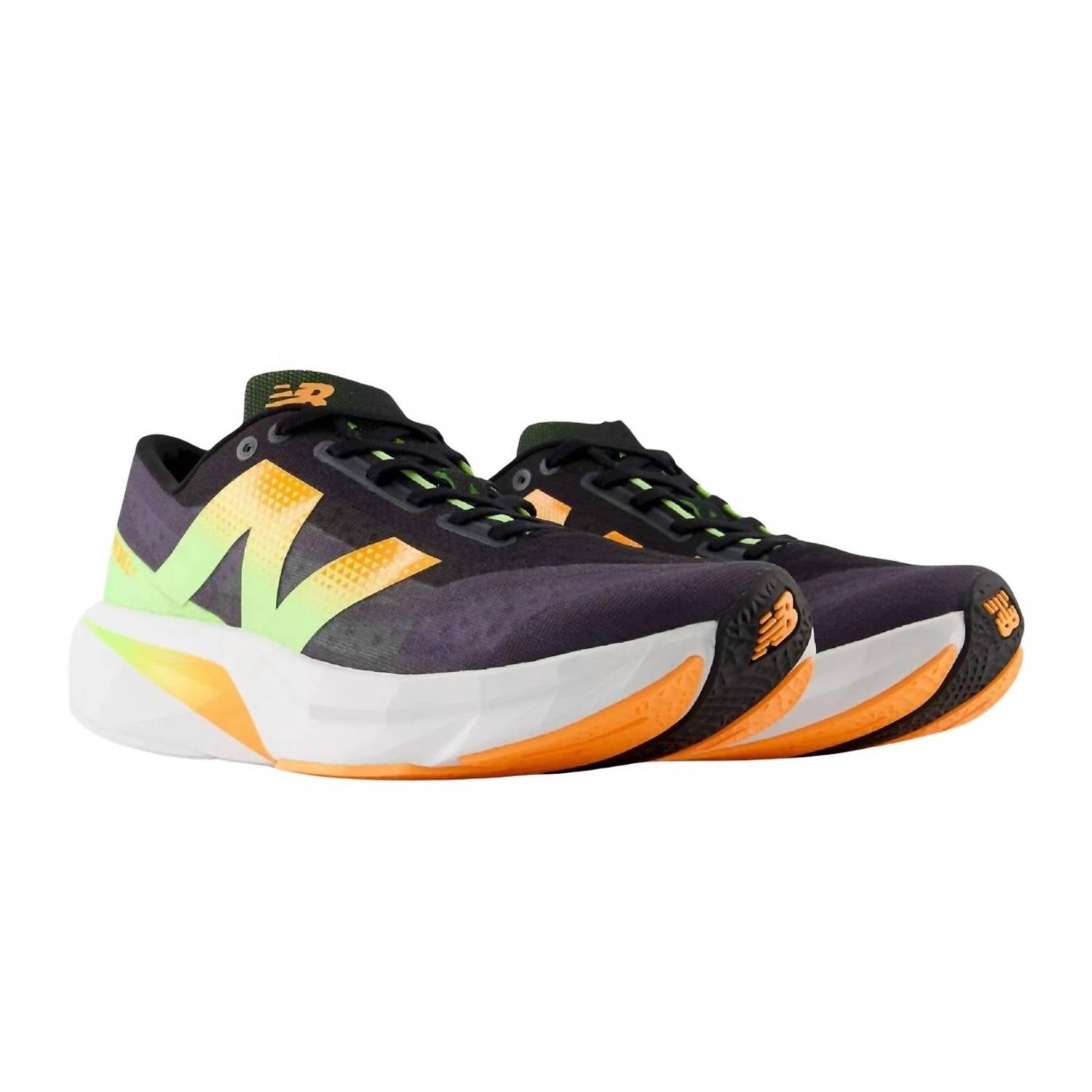 Introducing the New Balance Men's FuelCell Rebel v4 Running Shoes, a cutting-edge creation designed for performance and style in a striking black, orange, and green combination. These athletic shoes feature FuelCell damping technology for a propulsive running experience and a streamlined mesh upper that promotes ventilation and adds a race-inspired touch. Perfect for fitness and workout sessions, they are ideal for training on asphalt surfaces, adapting seamlessly from long runs to speed training. Designed with a round toe shape, the Rebel v4 represents New Balance's commitment to athleisure trends, sustainability, and eco-friendly practices.