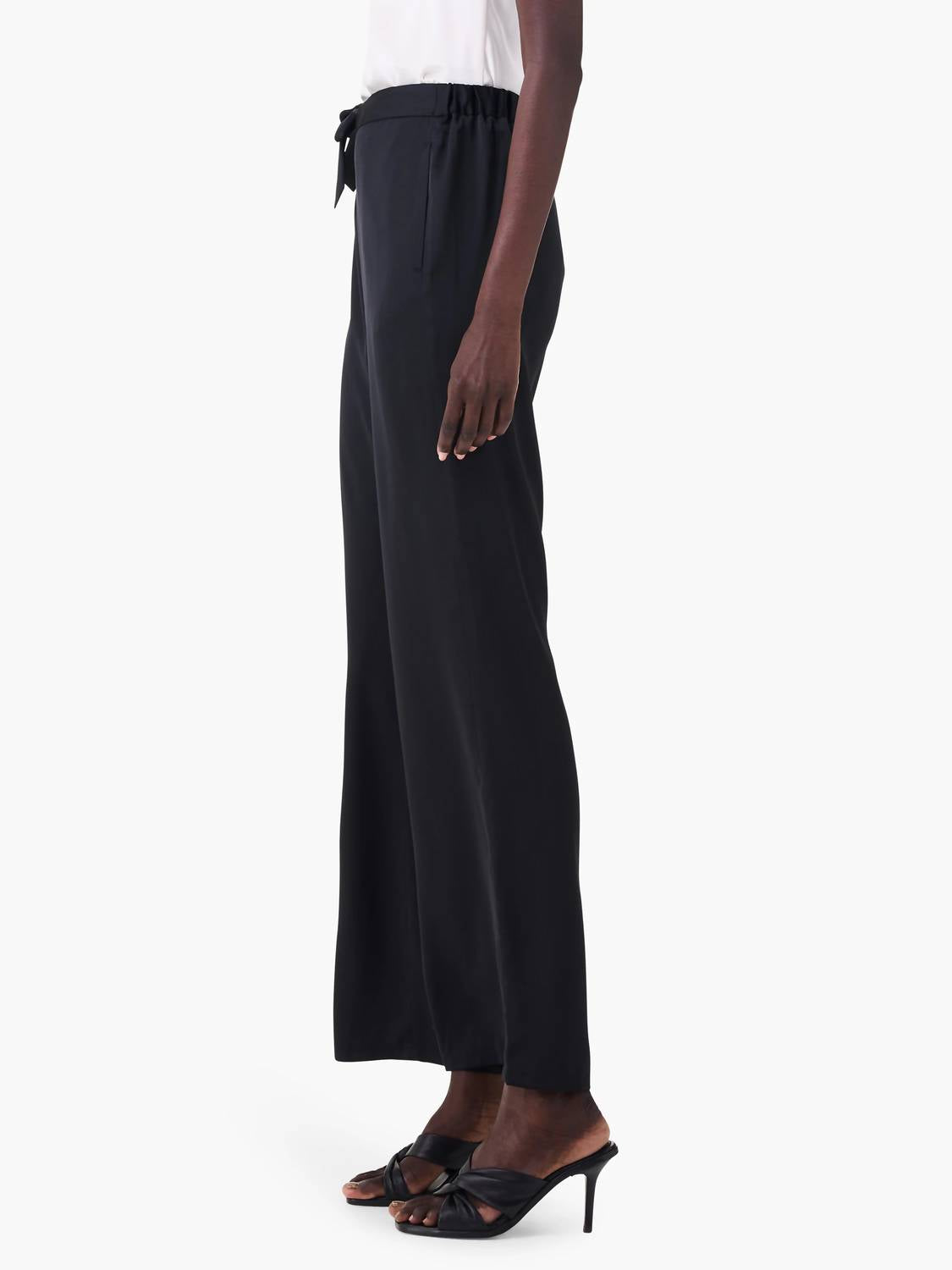 Elevate your evening wardrobe with the Crepe Wide Leg Pant by Nic + Zoe, featuring a solid color in Black Onyx. Designed for women, these wide-leg pants offer a chic workwear trend suitable for spring events, with a stylish high-rise waist complemented by a practical tie closure. They are crafted from high-quality polyester, and boast convenient pockets with a 30.5-inch inseam. Care is seamless with machine wash and tumble dry instructions, making them a functional yet elegant choice.