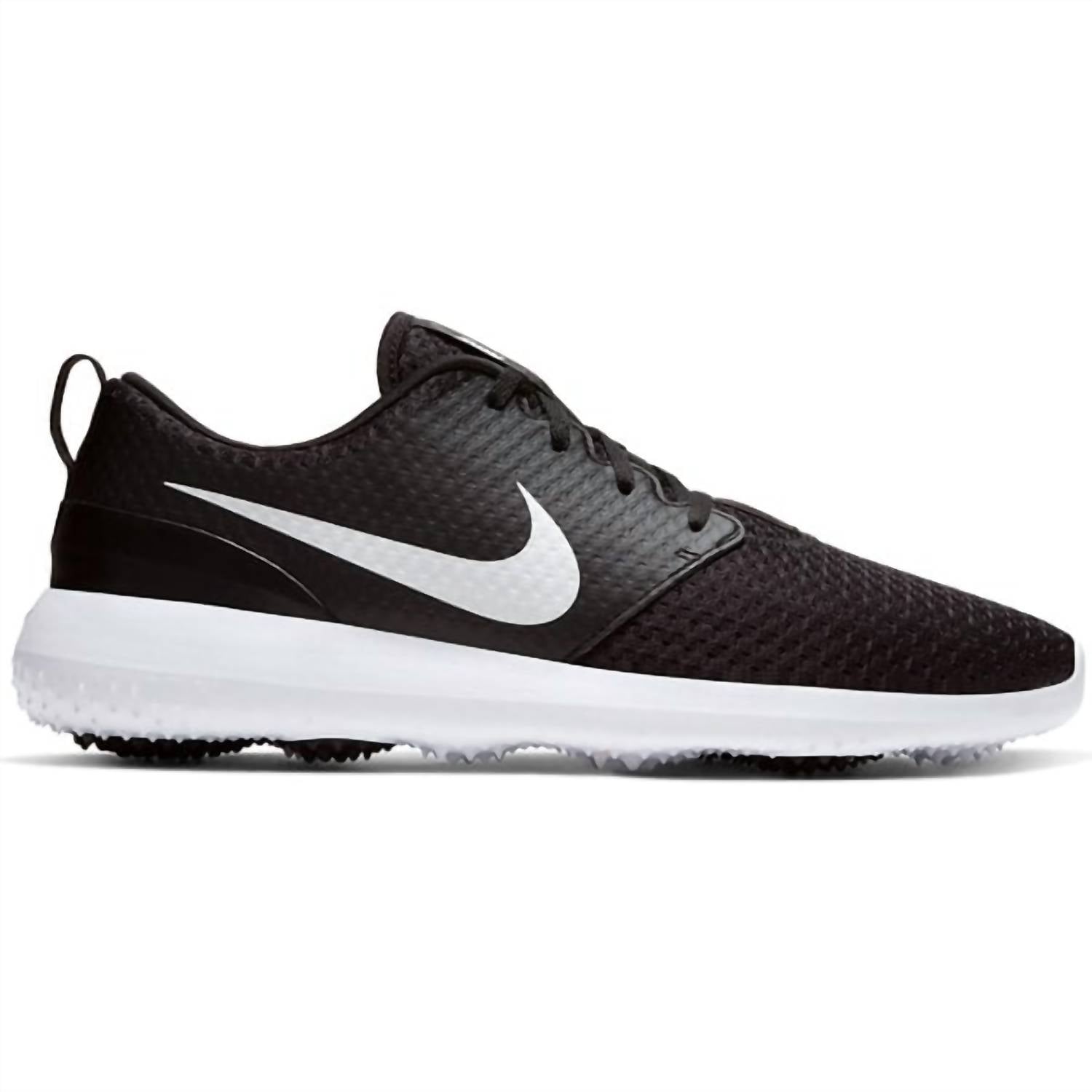 Step up your golf game with the Women's Roshe G Golf Shoes by NIKE, crafted for peak performance and style. Designed for fitness and athleisure, these shoes feature a round toe and a trendy chunky heel with a low height of 1 1/4" to 2", perfect for spring outings. Built for adult men, these black shoes seamlessly blend comfort and function. Ideal for workouts, they embody the perfect combination of fashion and performance heritage.