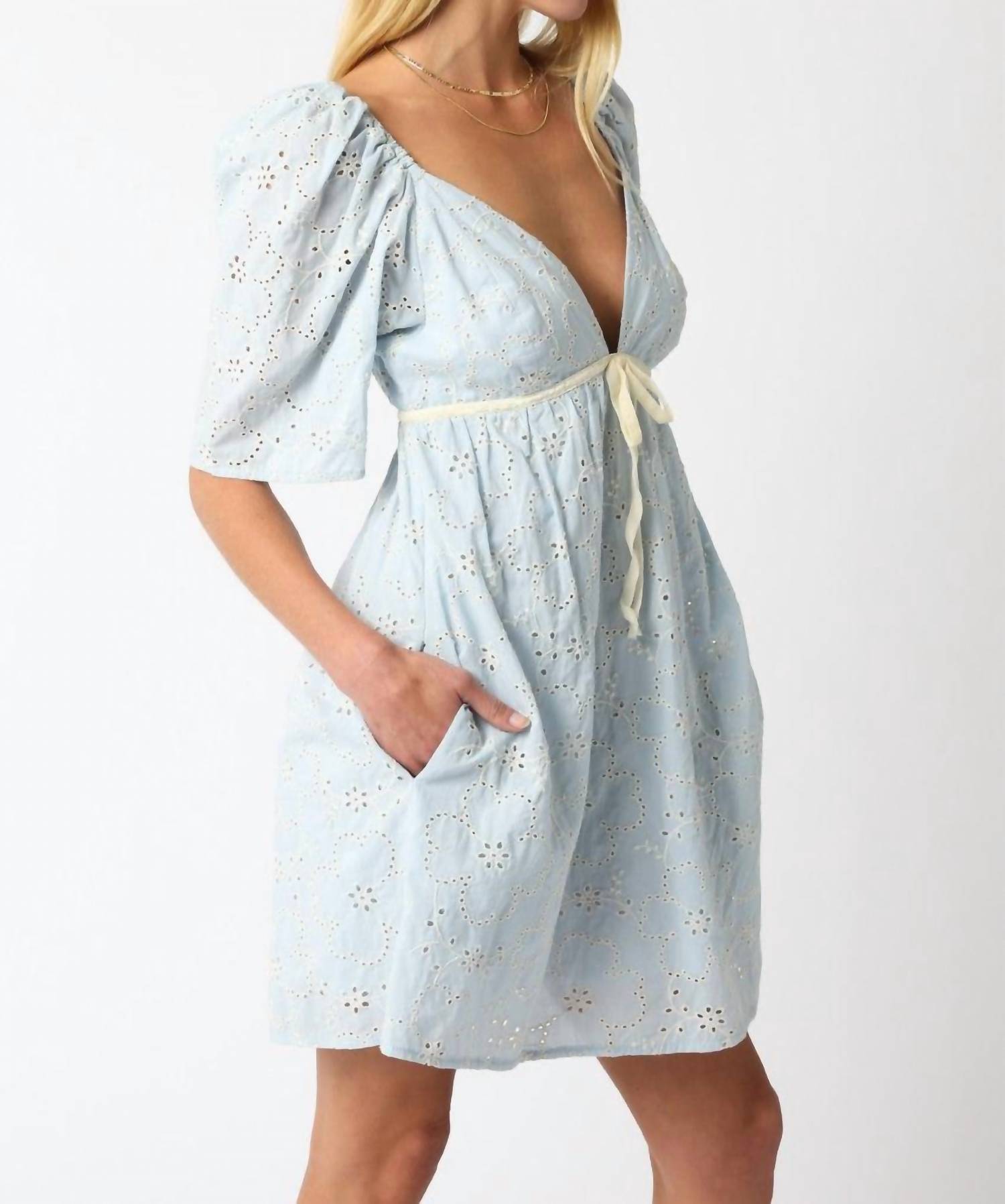 Pair with your favorite sandals for an effortlessly chic look. Discover the Madeline Floral Mini Dress by OLIVACEOUS, a boho-chic staple designed for sunny summer days. This blue shift dress boasts short sleeves and features a charming floral pattern, perfect for occasions like baby showers and Thanksgiving gatherings. Crafted from 100% cotton, it offers both comfort and style with a V-neck and convenient pockets. Closure: Pull on. Care Instructions: Machine wash.
