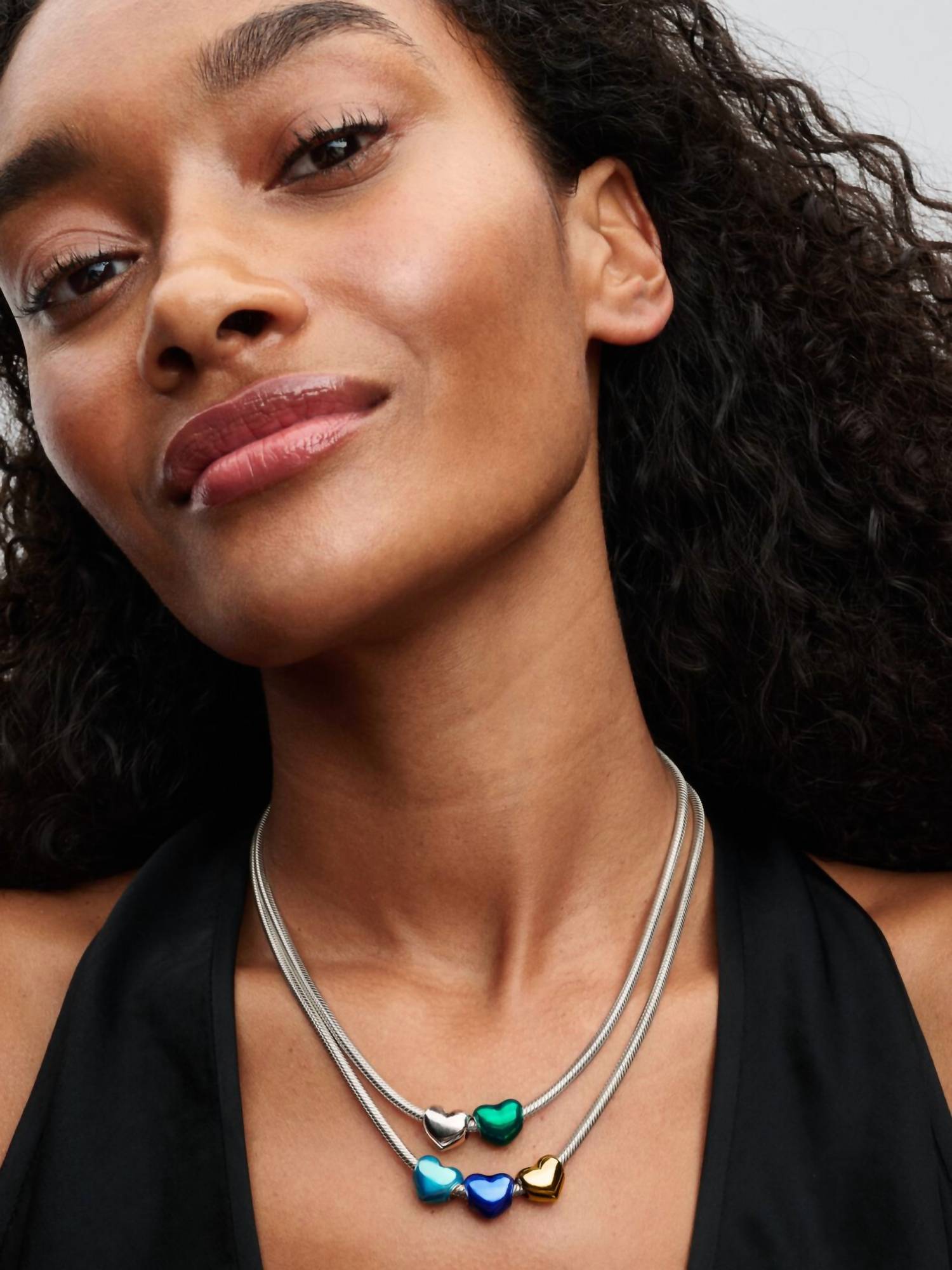 This stand-out bracelet is good enough to wear on its own, or stacked with your favorites. Add a fresh splash of biophilic elegance to your bracelet with the Women's Metallic Heart Charm by Pandora. This charm features a vibrant glossy green enamel that overlays its sterling silver base, creating a reflective and eye-catching finish. Perfect for any occasion, this striking fashion jewelry piece celebrates the power of color with its rich hue. Made with meticulous craftsmanship, it’s an excellent addition to elevate your jewelry collection.