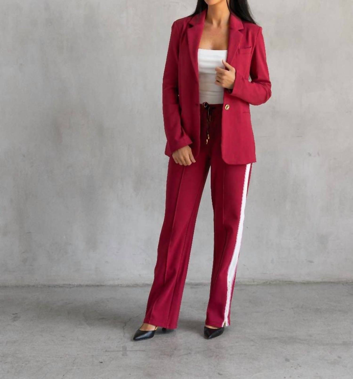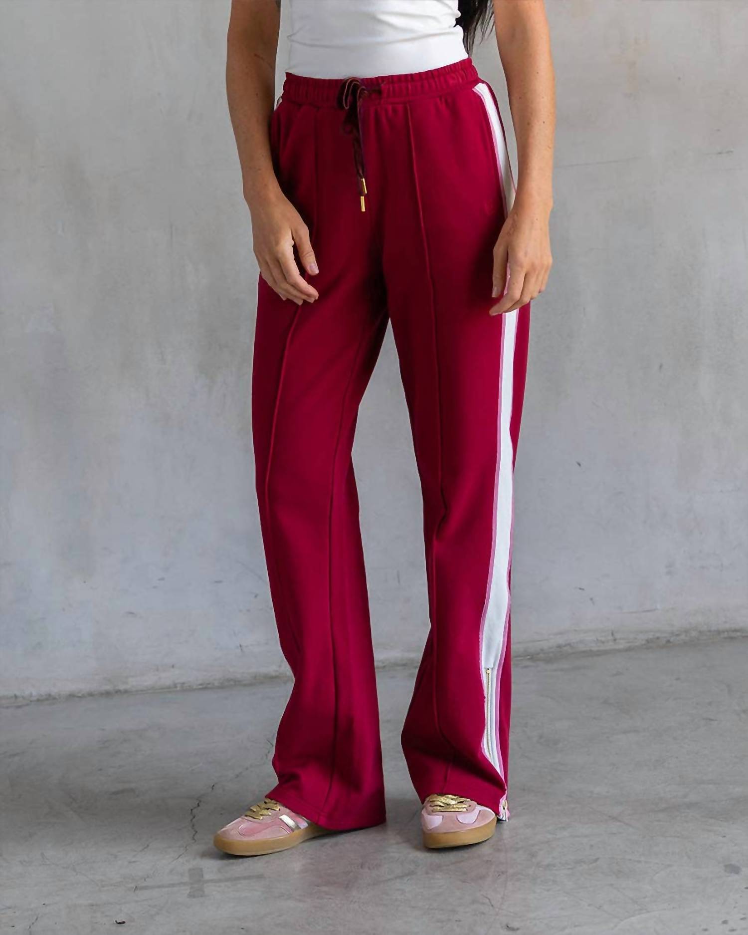 No gym necessary for these cool-girl joggers. Introducing the Jordan Interlock Pants by Care Tucker, a stylish homage to the 90’s track pant, now in a vibrant Sailor Blue. Crafted from a refined cotton blend, these pants offer a smooth finish with an exceptionally soft touch. Closure: Convenient tie closure. Care: Machine wash, lay flat to dry.