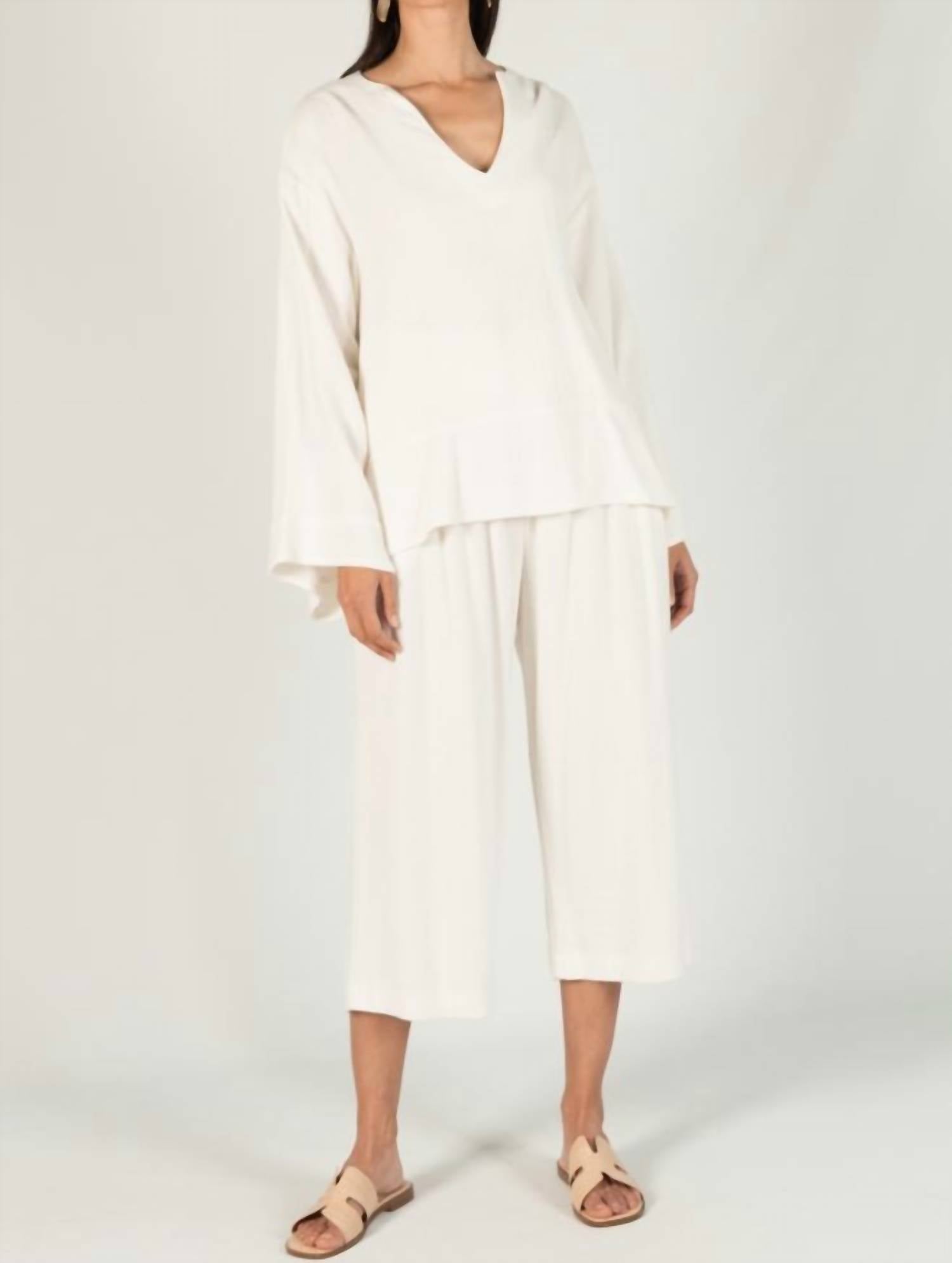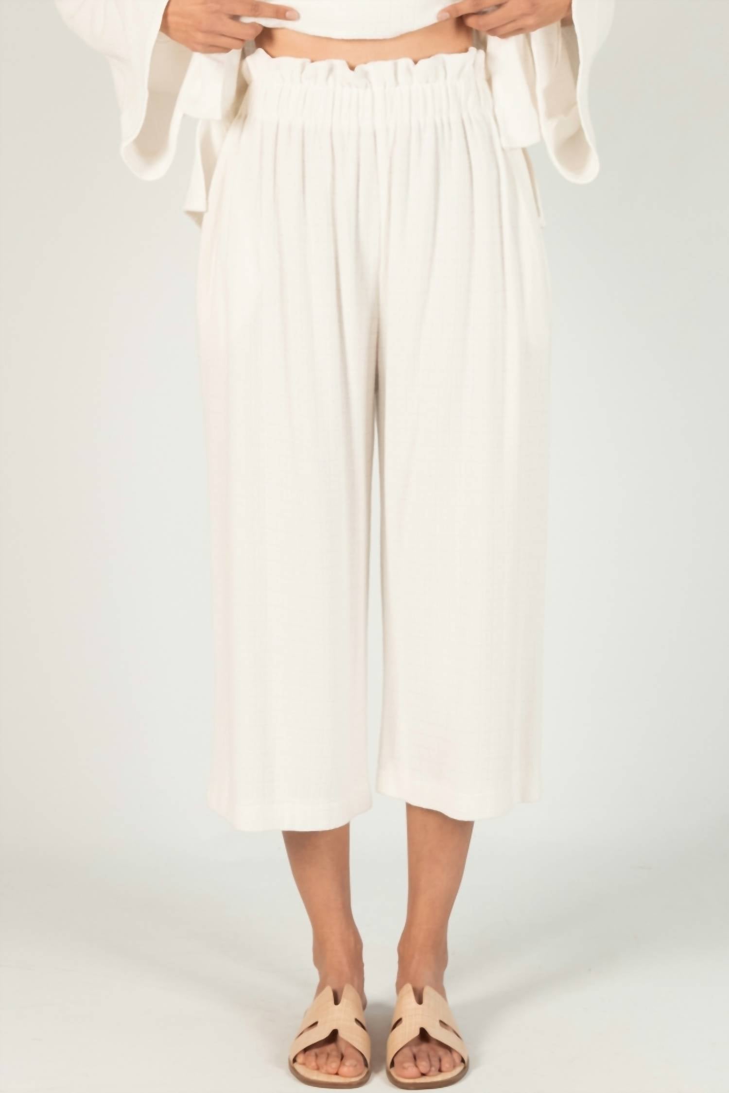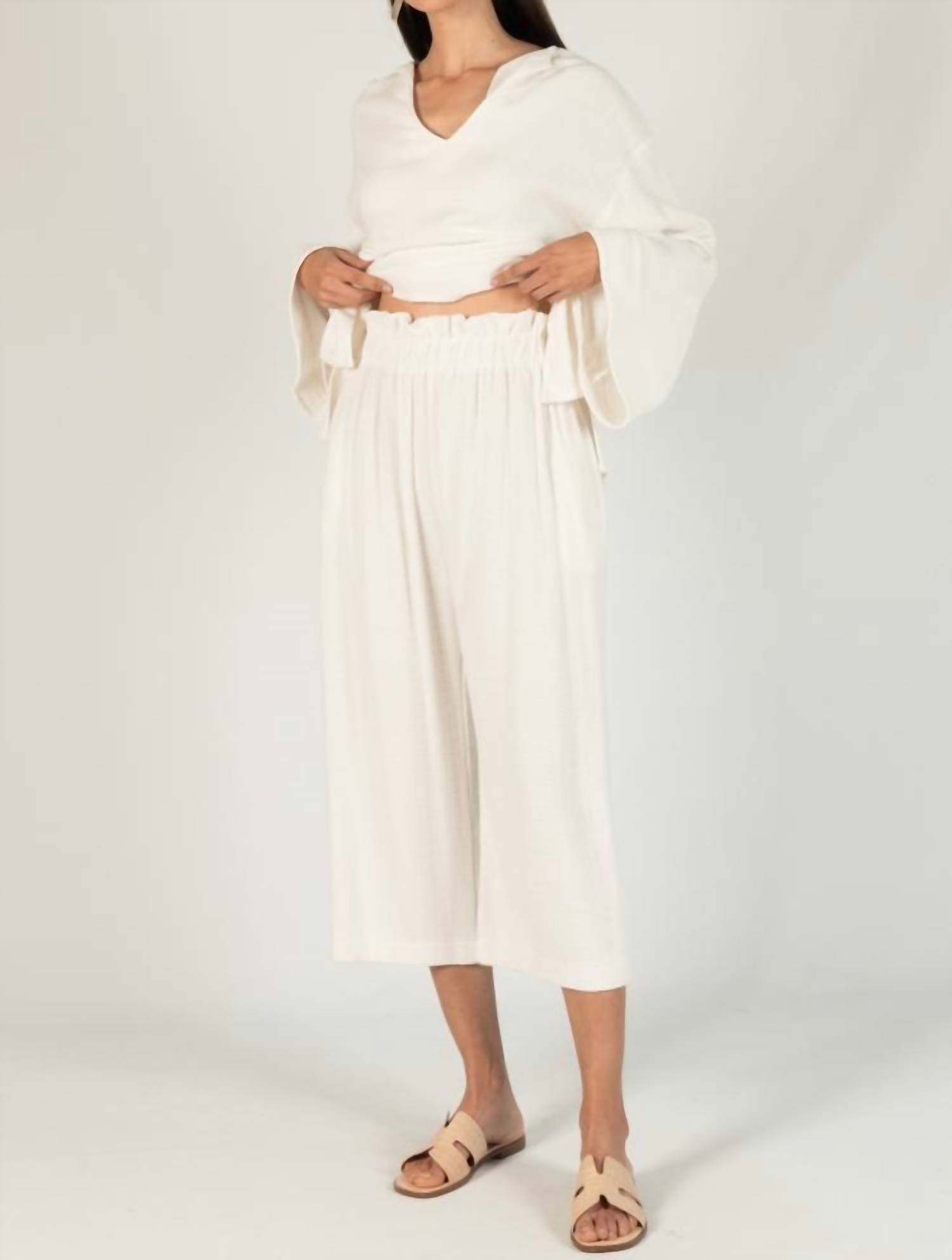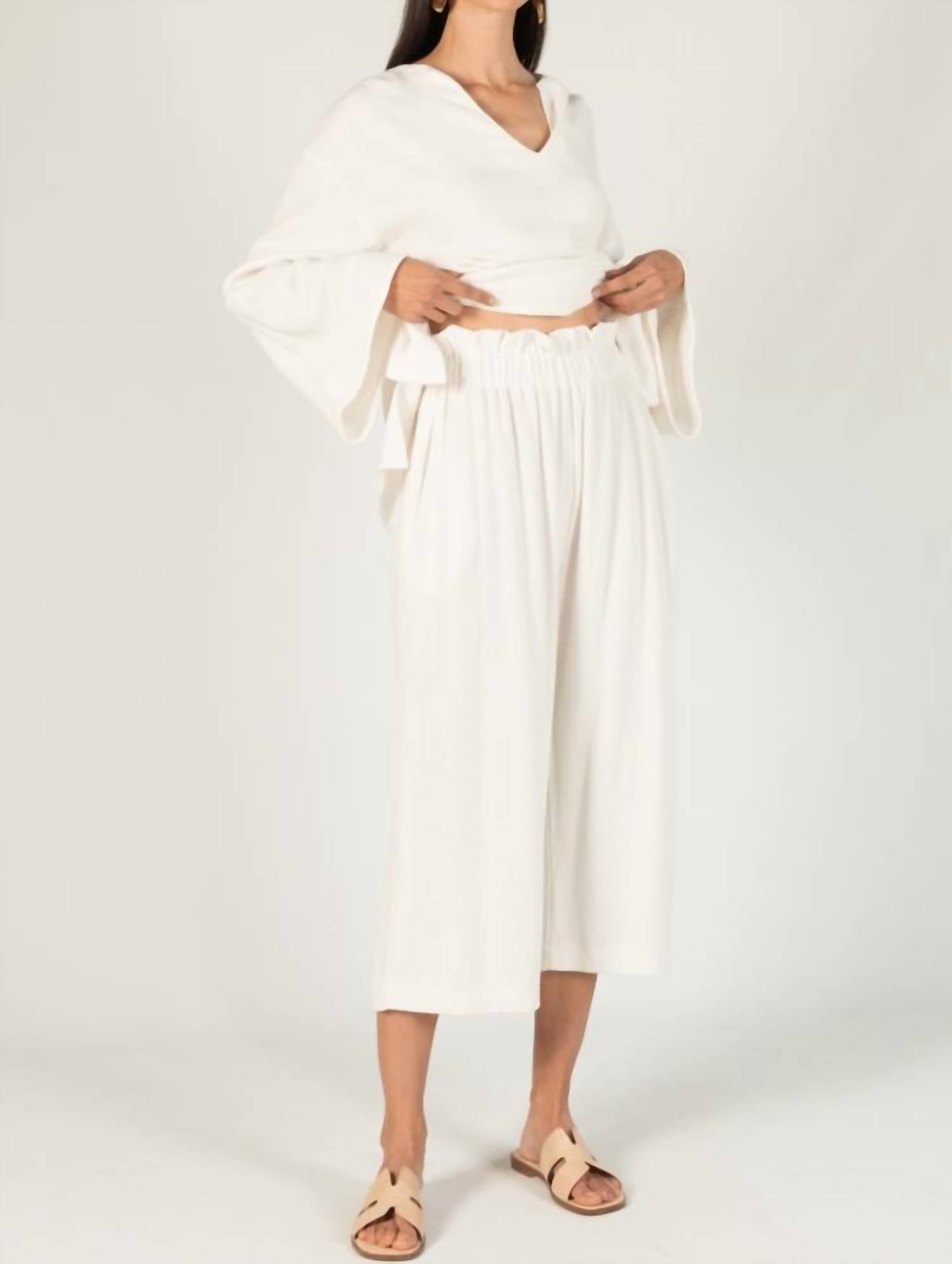 Enhance your wardrobe with this trendy cropped number, designed to blend style and practicality. The comfortable fit allows for easy all-day wear. The perfect length to pair with your favorite mules. Introducing the Linen Culotte Pants by Before You Collection, adding a touch of elegance to your wardrobe. These ivory pants feature a high rise and a relaxed, wide-leg fit with a solid pattern, ensuring both comfort and style. Made from a linen blend with 55% Linen and 45% Rayon, they are crafted with an elastic waist for easy pull-on wear and come with convenient pockets. Made in China and designed for women, the care instructions recommend hand washing to maintain their quality.