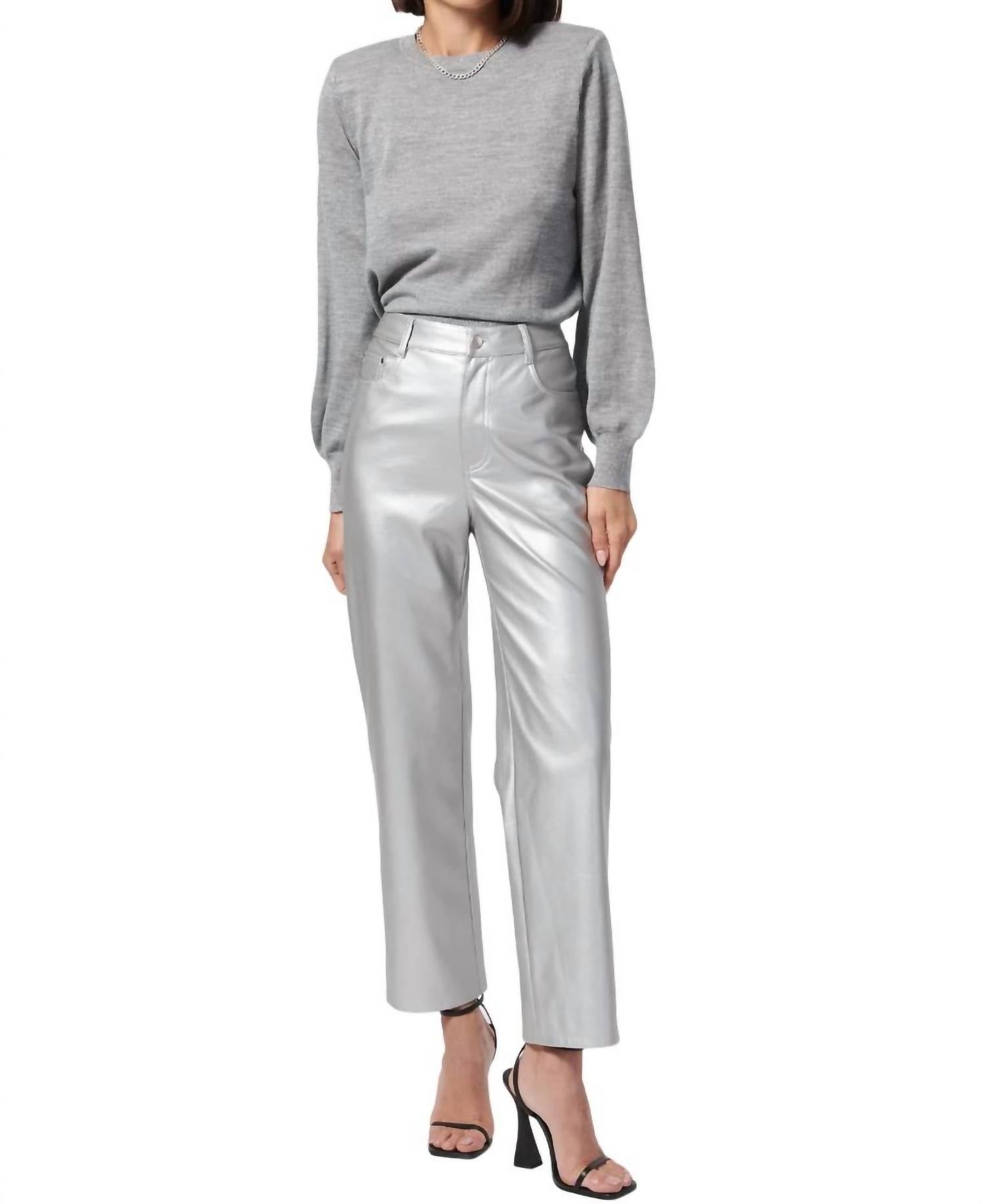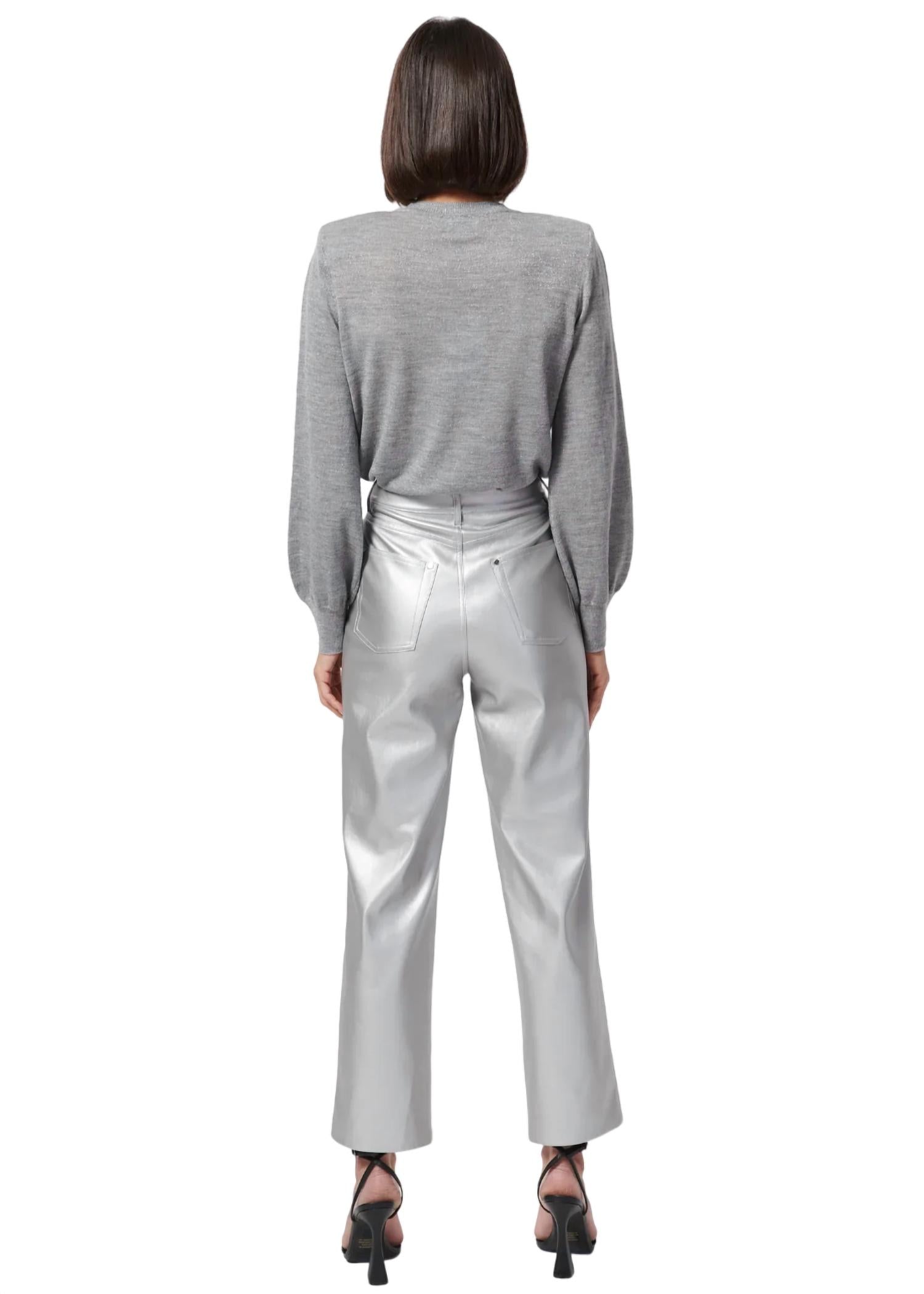 Crafted from a supple vegan stretch leather. High-waisted straight leg pant finished with a fly closure and both front and back pockets. Materials: 55% Polyurethane, 45% Polyester. Dry clean only.