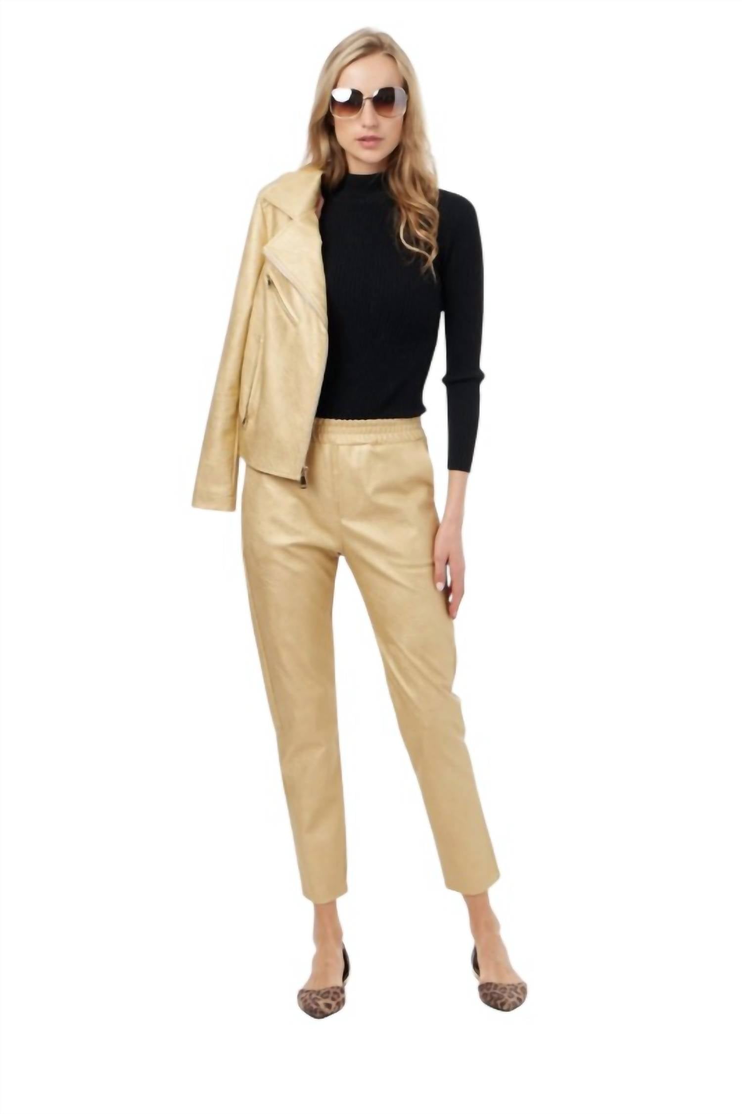 Faux leather made In Italy Elastic waist vegan leather pantsSide seam pockets