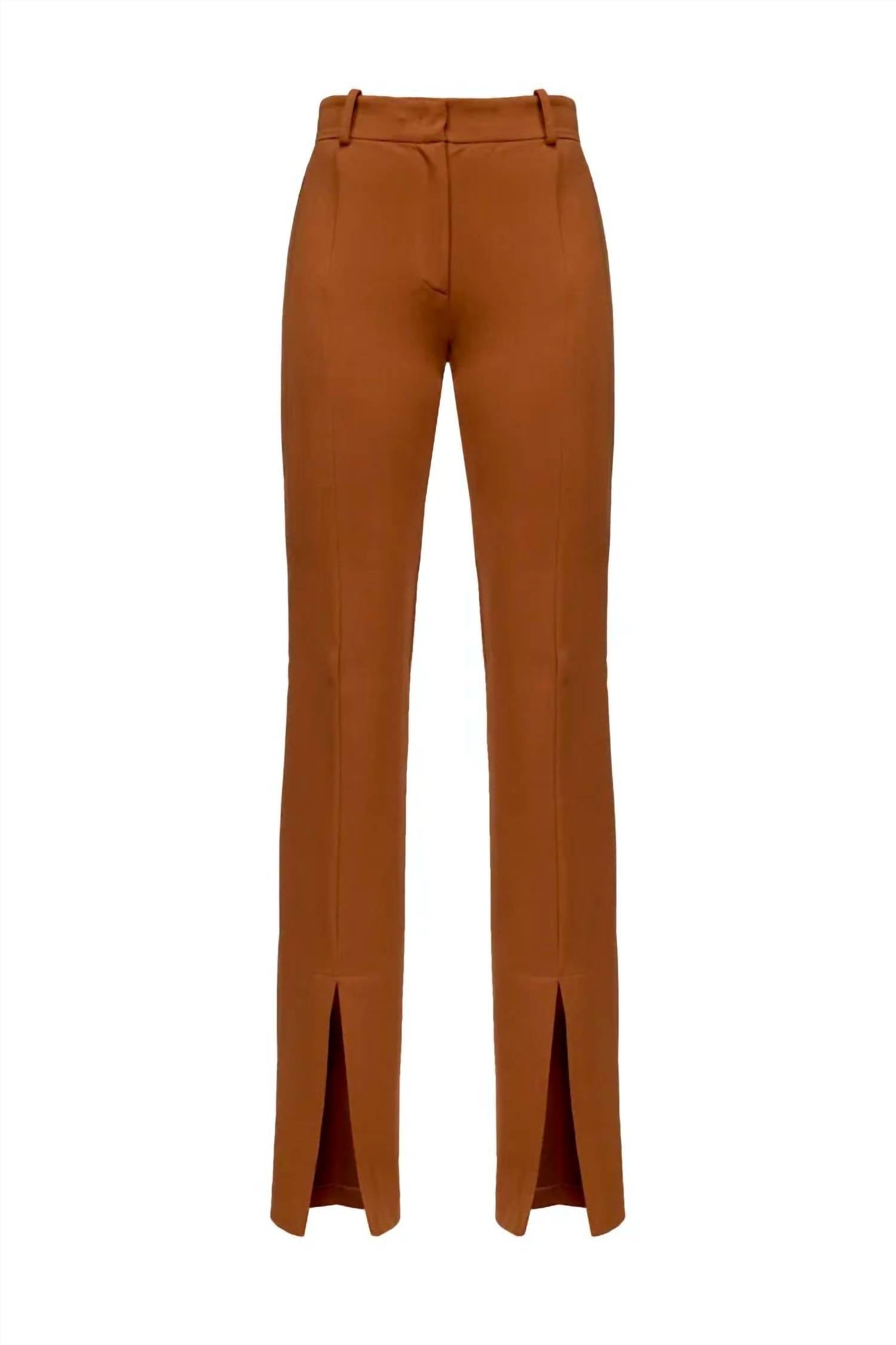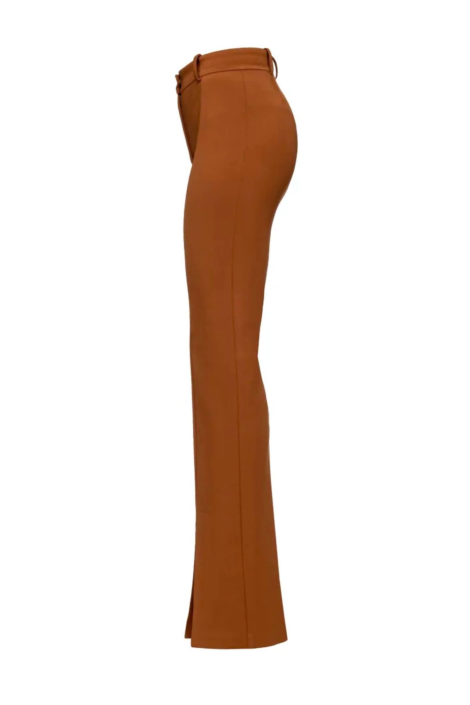 Flare-fit trousers in scuba-effect stretch technical viscose. Regular waist with belt loops, snug-fit leg flared at the bottom and split in the middle at the bottom on the front. Fastened with zip and small concealed hook. Style: 100351-A041-L33. 49% Polyamide/44% Viscose/7% Elastane. Cold water gentle wash. Do not bleach. Hang to dry; do not tumble dry. Cool iron without steam. Or dry clean.