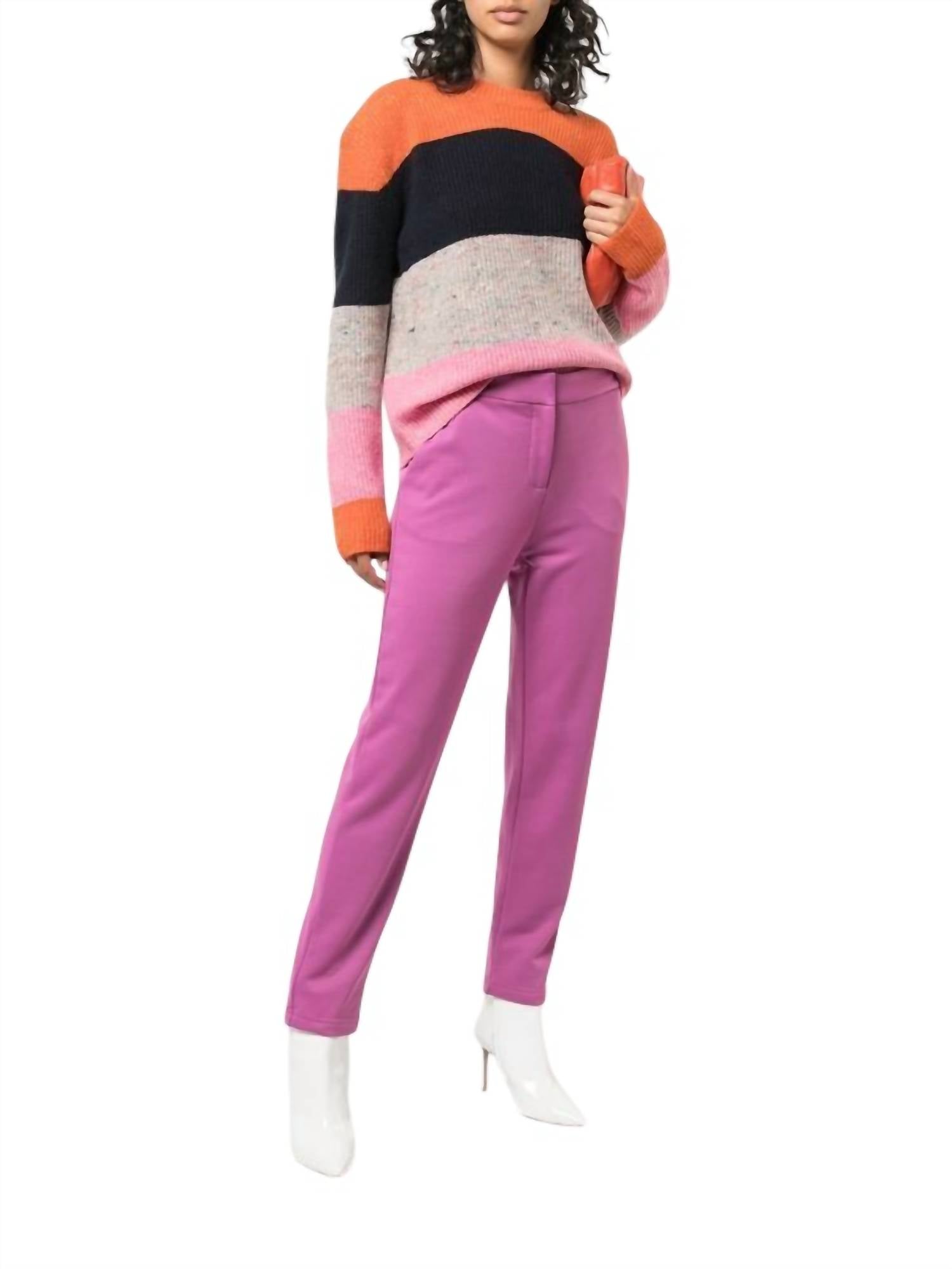 Introducing the Kramer Slim Straight Leg Trousers by A.L.C., where tailored precision meets modern style. Crafted from a blend of 64% Nylon and 36% Cotton, these pink trousers offer a slim fit with a regular length. Featuring a concealed front zip closure, elasticated waistband, side pockets, and back jetted pockets, every detail is thoughtfully designed for both functionality and style. With an inseam of 27", front rise of 11", back rise of 14.5", leg opening of 12", and waist of 15.5", these trousers are dry clean only to maintain their sleek finish and structure.