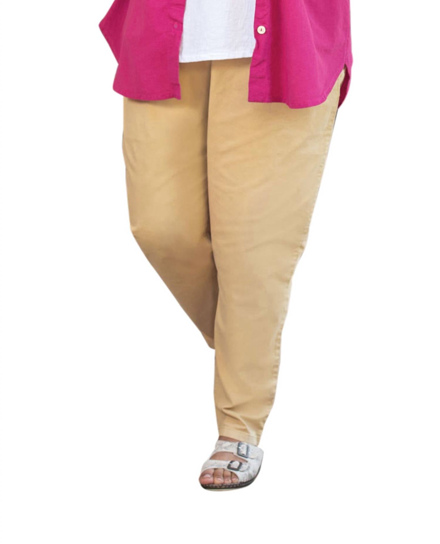 54% Linen 43% Rayon and, 3% Elastane. Tapered fit. Mid-rise waist. Elasticized waistband. Side pockets. Designed full-length.