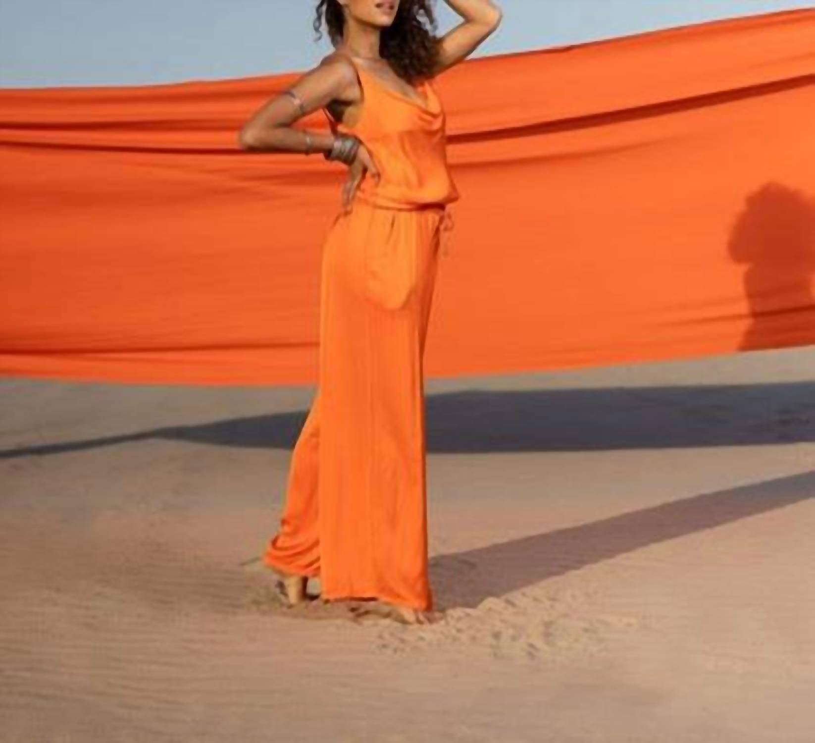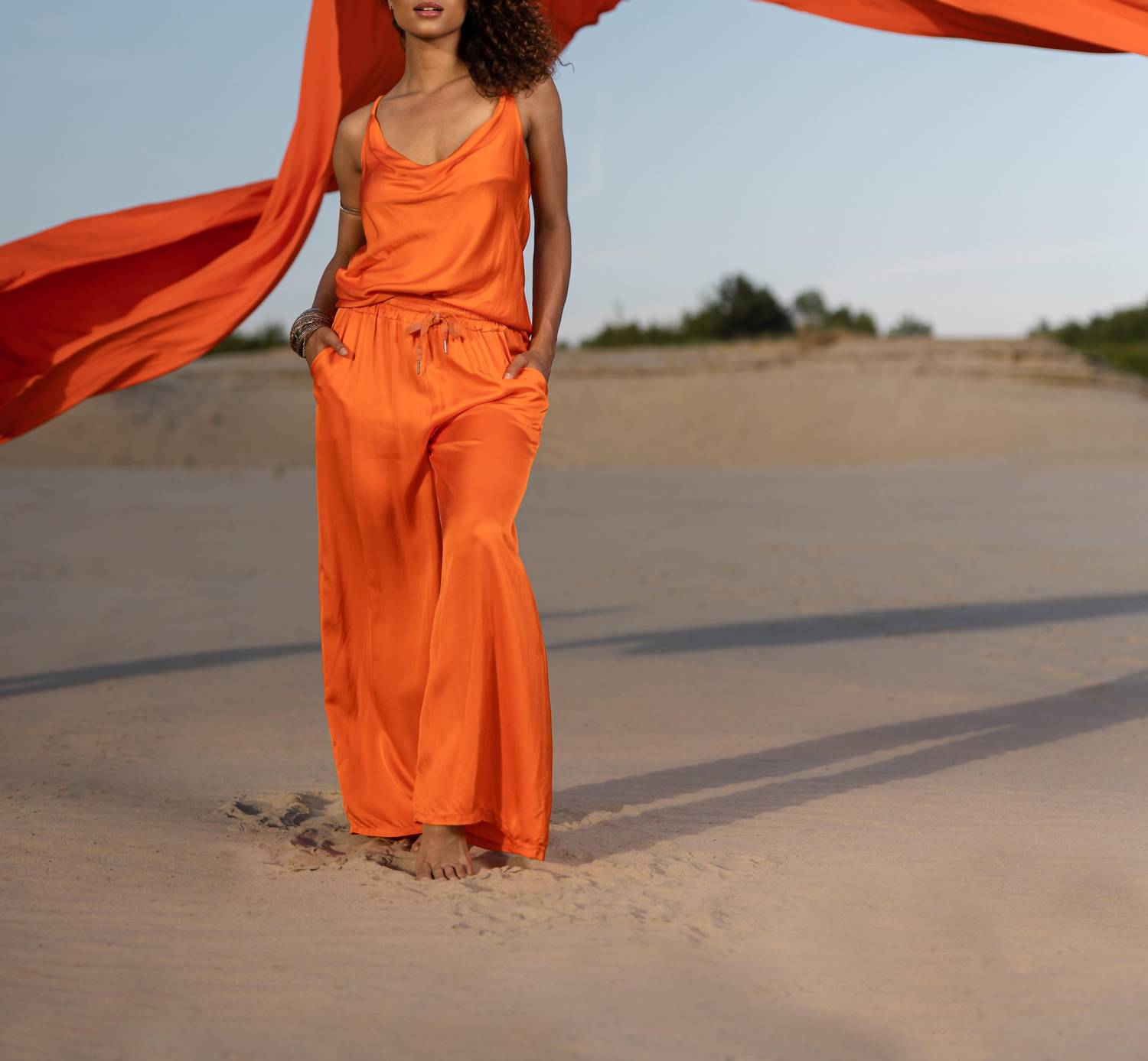 Experience the ultimate blend of comfort and style with the Wide Leg Palazzo Pants by Made in Italy, presented in a vibrant orange hue. Crafted from 100% viscose, these solid pattern pants offer a luxurious soft feel and feature a tie closure and convenient pockets. Styled in a comfortable wide leg fit, they are perfect for lounging or pairing with wedges for an elevated look. These pants, proudly made in Italy, embrace sophistication with every wear.