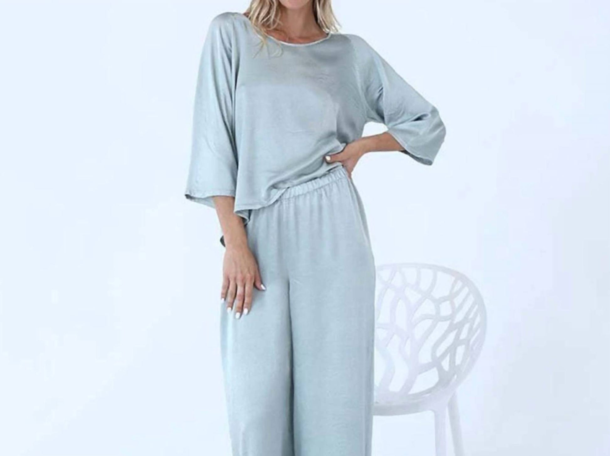 A long sleeve top you can wear with denim, skirts, well... just about anything! Discover the Perla Satin Crew Neck Three Quarter Sleeve Top from PJ Harlow's new Daydream Collection, designed for ultimate comfort and style. This top offers a luxurious 100% Rayon construction, allowing for a soft, silky feel. Proudly made in the USA, this loose-fitting sage piece features a pull-on closure for effortless wear. With a solid pattern and machine wash and dry care instructions, it's perfect for both lounging at home or stepping out with ease.
