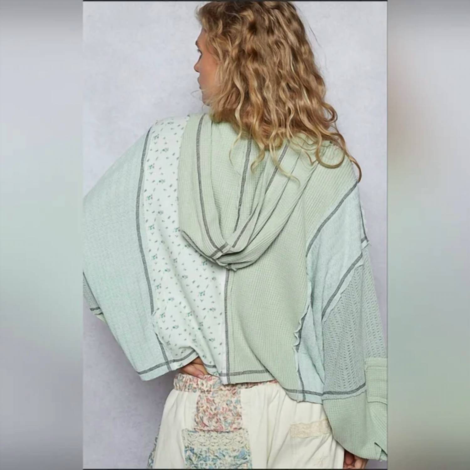 Great fit, cute design, soft fabric. You'll love everything about this long sleeve tee. Elevate your wardrobe with the Lynn Thermal Balloon Sleeve Hoodie Top by POL, a perfect blend of comfort and style. Crafted from 100% cotton, this pistachio patterned hoodie is ideal for your boho chic looks. Featuring long balloon sleeves and a V-neck, it has a pull-on closure for easy wear. Care for this spring essential by machine washing and tumble drying. Dimensions include a bust of 35.75", length of 21", and sleeve length of 18.25". Ideal for celebrating anniversaries in style.