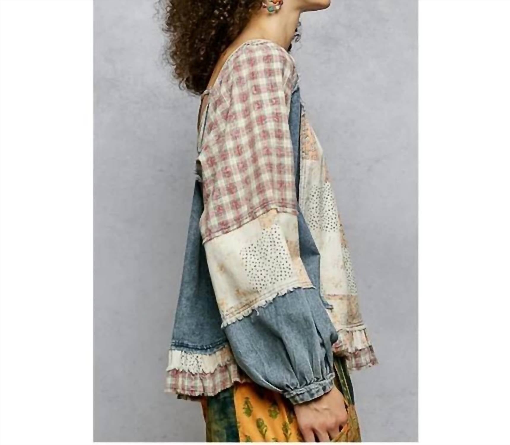 A versatile blouse that works from desk to dinner! The POL floral plaid print denim top features a square neckline, long balloon sleeves, and an oversized non-stretch fit crafted from 100% rayon double gauze with plaid contrast detailing, offering a relaxed, boho-meets-romantic streetwear style perfect for layering and versatile wear across seasons, occasions, and aesthetics.