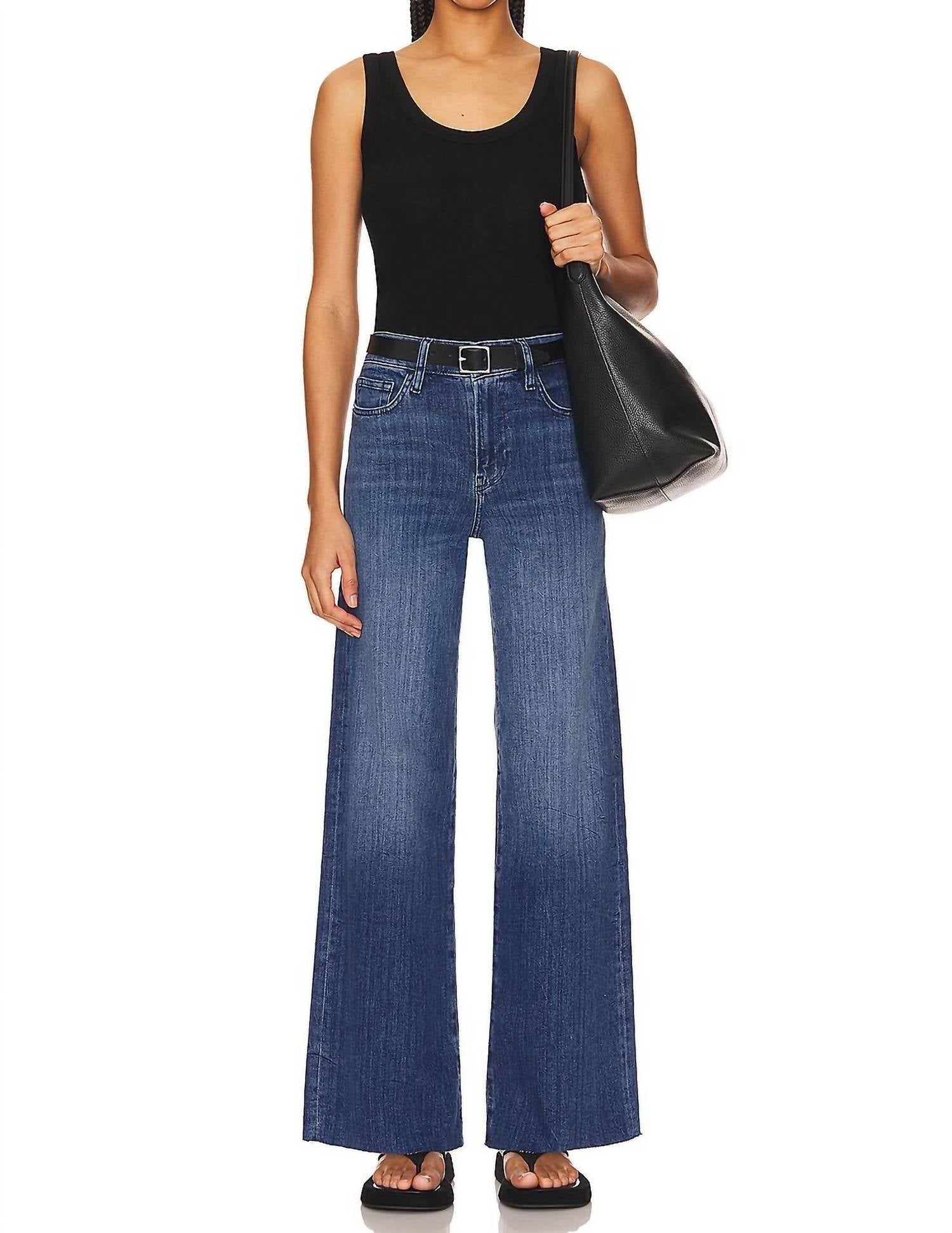 Introducing the Le Slim Palazzo High Rise Jeans by FRAME, a perfect blend of style and comfort for your wardrobe. These jeans feature a high-rise waist and a subtle wide-leg flare for a flattering look. Crafted from a soft stretch cotton modal blend, they include a button closure for secure fit. Composition: 77% Cotton, 18.5% Rayon, 3.5% Elastarell-P, 1% Elastane. Care instructions: Machine wash. Ideal for travel, these jeans come in a chic Crossings color and are designed to complement your streetwear-inspired looks.