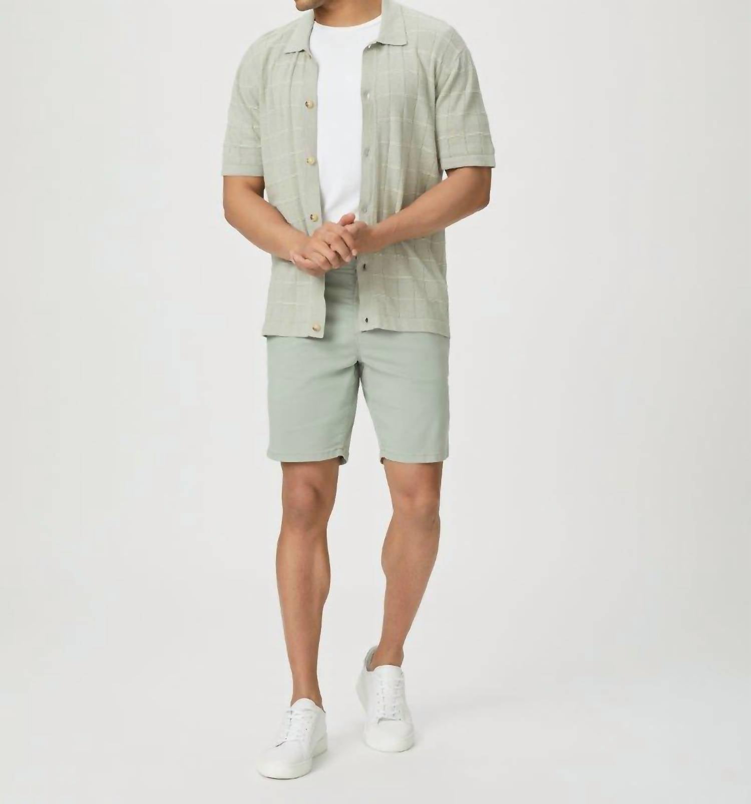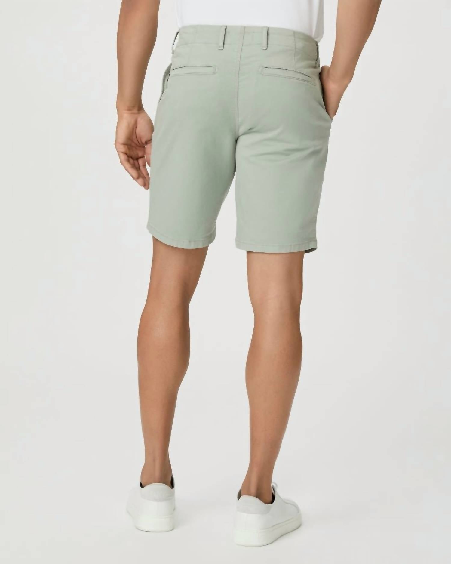 Discover the Phillips Short by Paige, a modern chino style perfect for an athleisure look in Cream Tusk. Crafted for men, these flat front shorts boast a solid pattern and a slightly longer 8 1/2” inseam, making them ideal for vacations and Father's Day celebrations. The cotton blend with a touch of stretch offers comfort without compromising on refinement, with convenient pockets and a stylish 21" leg opening. Closure: Zip closure. Care: Machine wash and line dry for easy maintenance. Model is 186cm/6'1" and wears size 32.