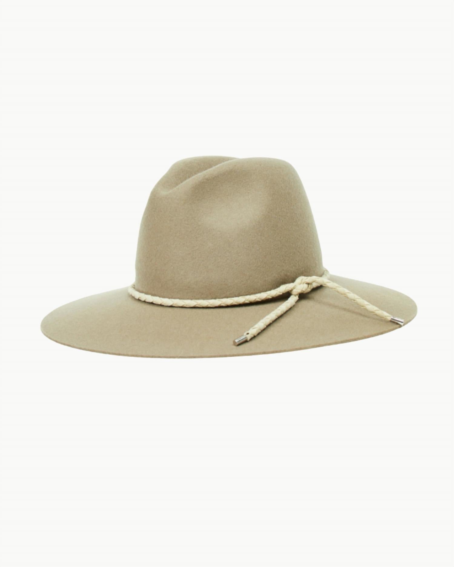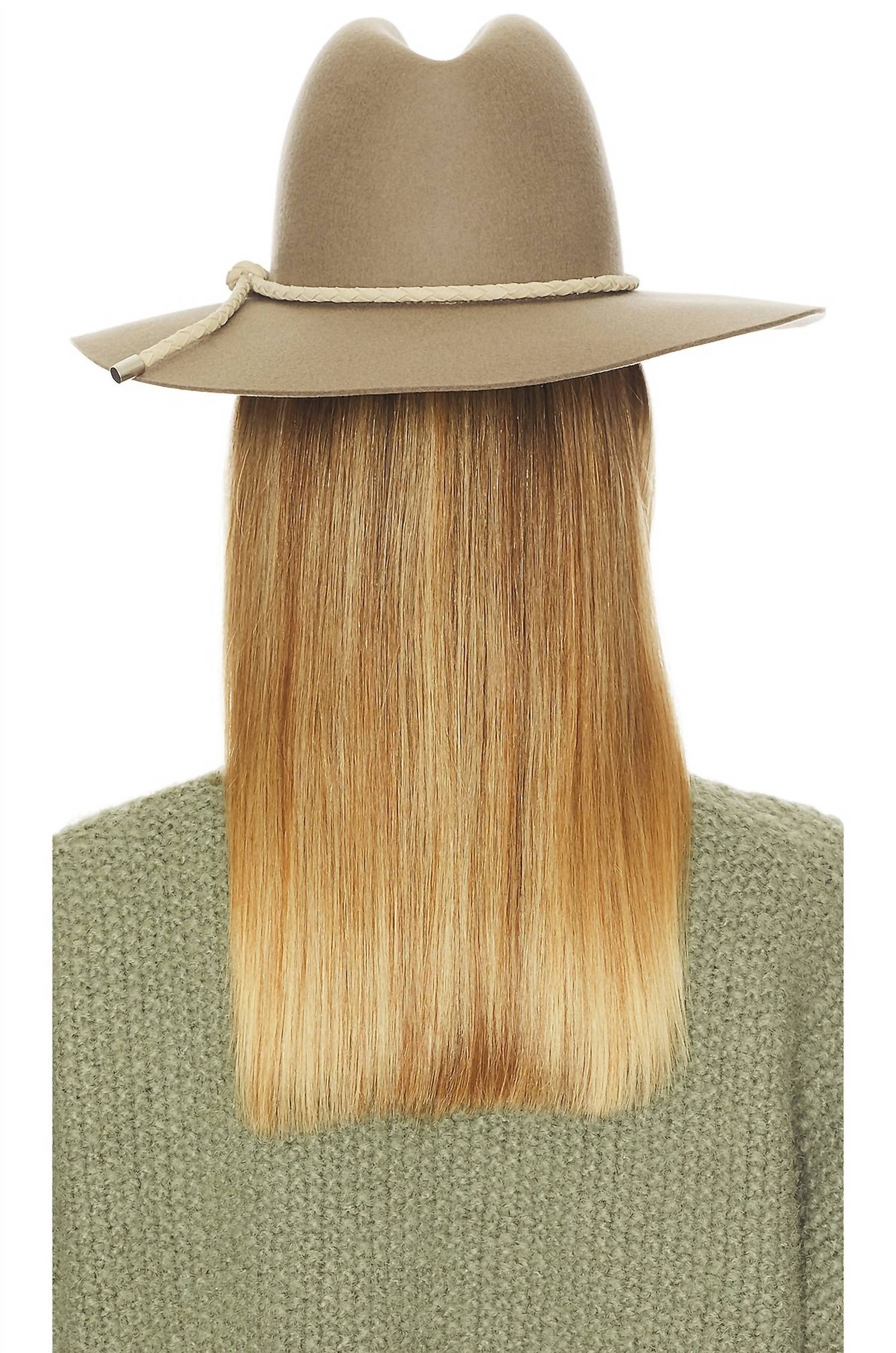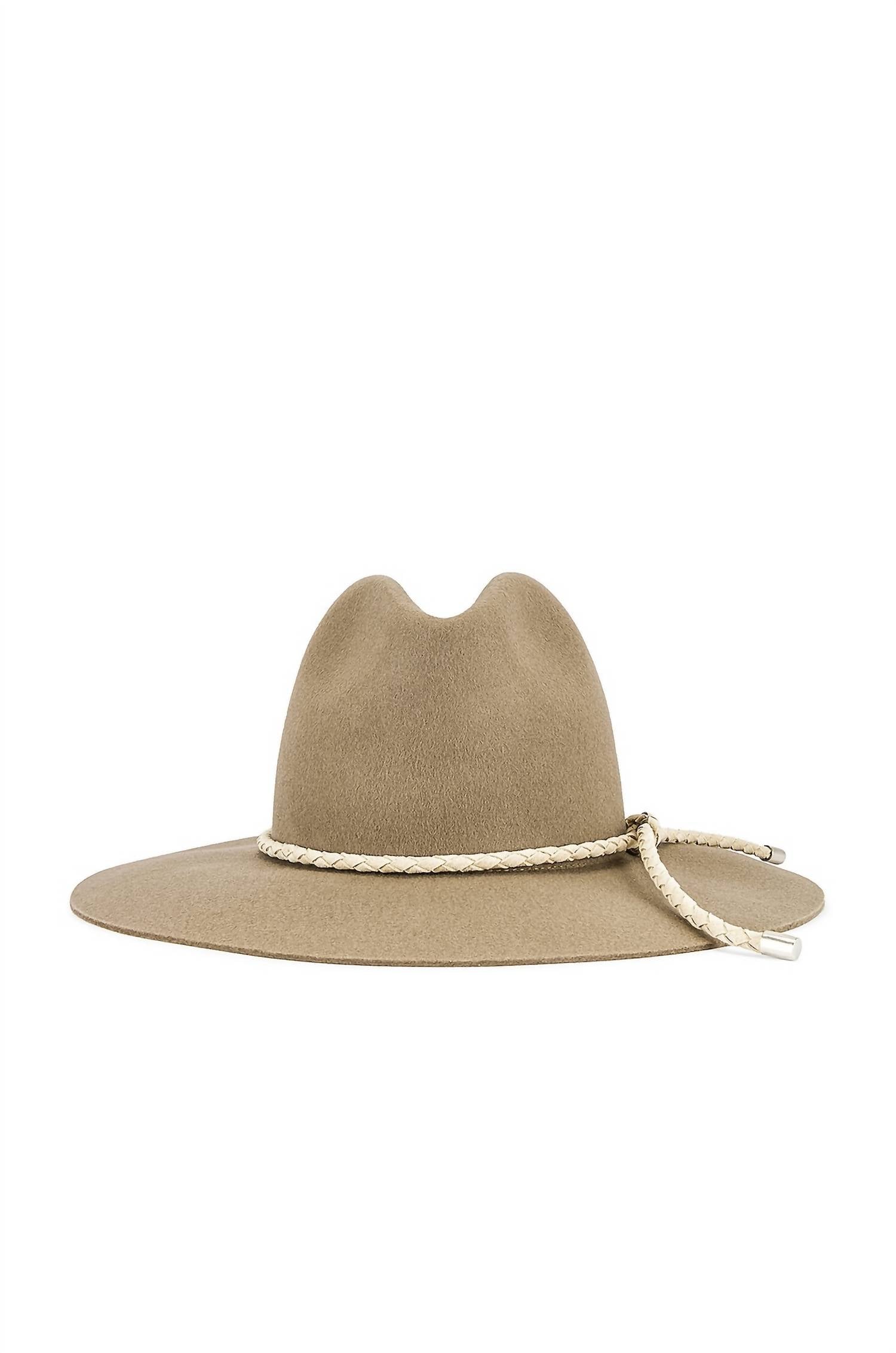 Block the sun in style with this adorable hat that will complement any outfit. Expertly crafted to elevate your style while providing a delightful touch of personality. The Women's Valencia Fedora Hat by Rag & Bone effortlessly blends rustic charm with refined style in warm grey. Crafted from 100% wool with a contrast fabric of 75% polyester and 25% polyurethane, it features a polished braided rope band adorned with silver-tone tips. This timeless fedora, made in Spain, is designed with a structured brim approximately 3–4 inches wide, adding an elevated edge to any outfit. Available in sizes with circumferences of S: 21", M: 22", and L: 23".