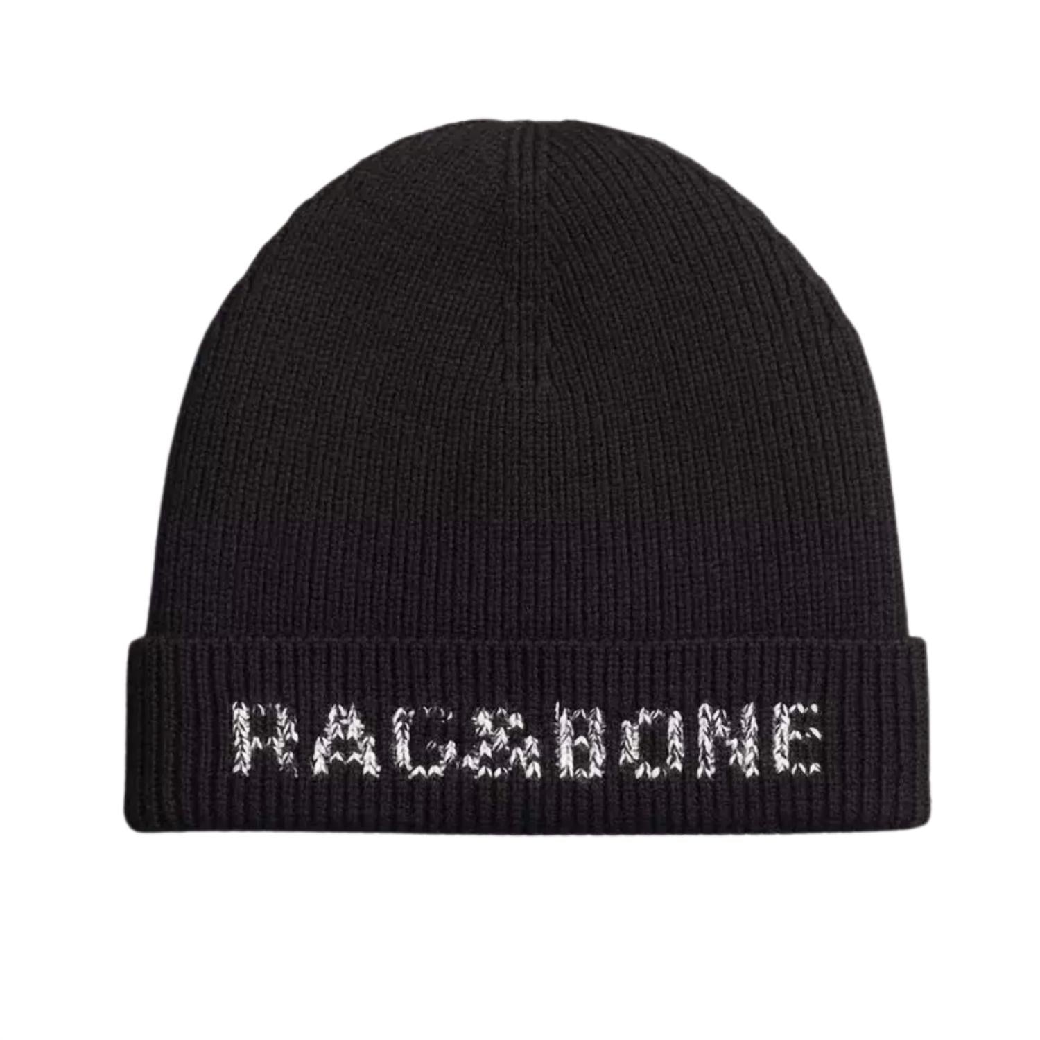 Turn heads in this stylish and chic hat. Not only is this accessory a must for keeping the sun out of your face, it will also be the perfect complement to any cute warm-weather outfit. Rag and Bone  Margo Beanie Wool, Nylon, Spandex in Black Multi  Ribbed Beanie  Jacquard "RAG & BONE" Text Turn Back Hem  One Size Length 8"  Bottom Edge Width 9.5"  Dry Clean