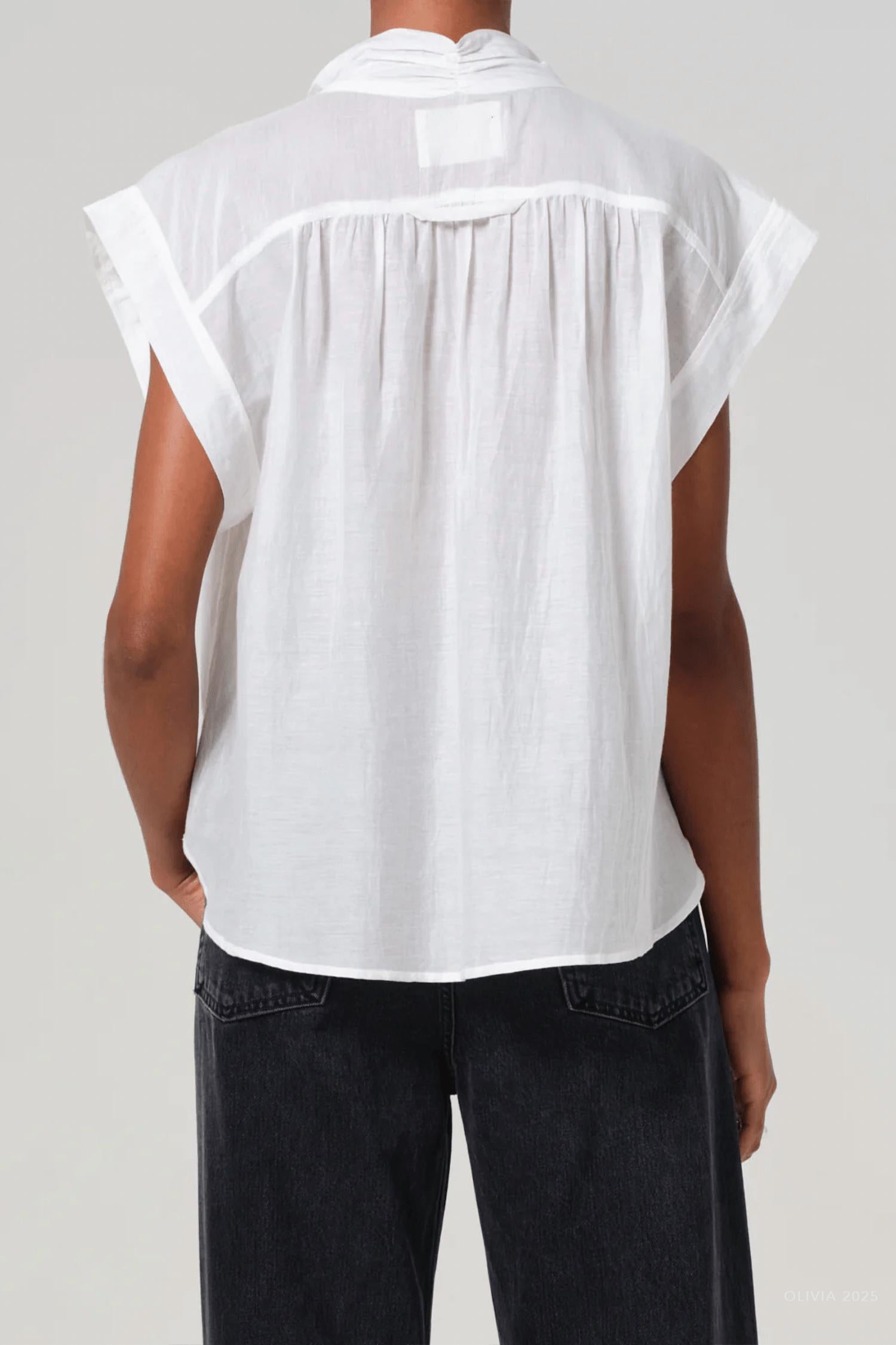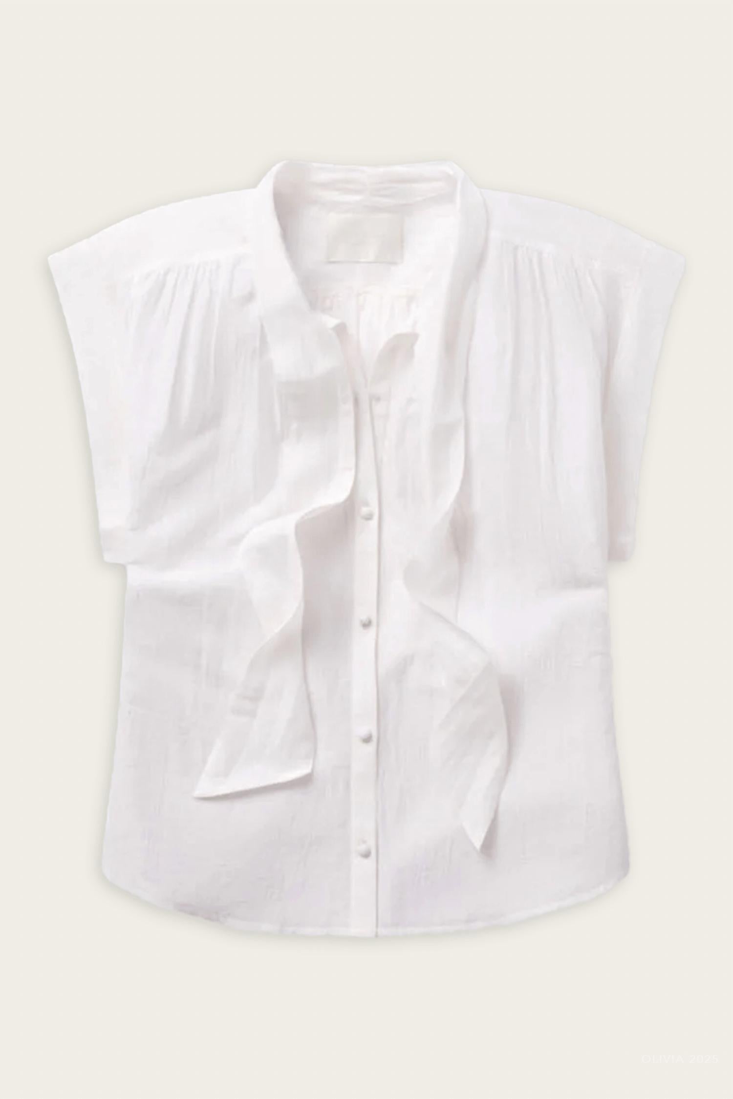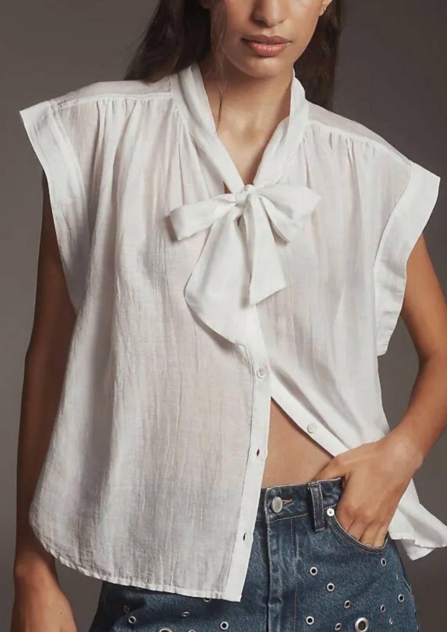 Pair this with your favorite jeans and slides for your next girls night out. Elevate your dinner party ensemble with the Penny Blouse With Neck Tie by Citizens of Humanity, a chic addition to any wardrobe. This white blouse features cap sleeves and a stylish V-neck, embodying a boho chic trend perfect for the spring season. Crafted from a luxurious blend of 80% cotton and 20% silk, it offers a sumptuous, natural feel. Made in Turkey, it closes with buttons and requires simple care with a hand wash.