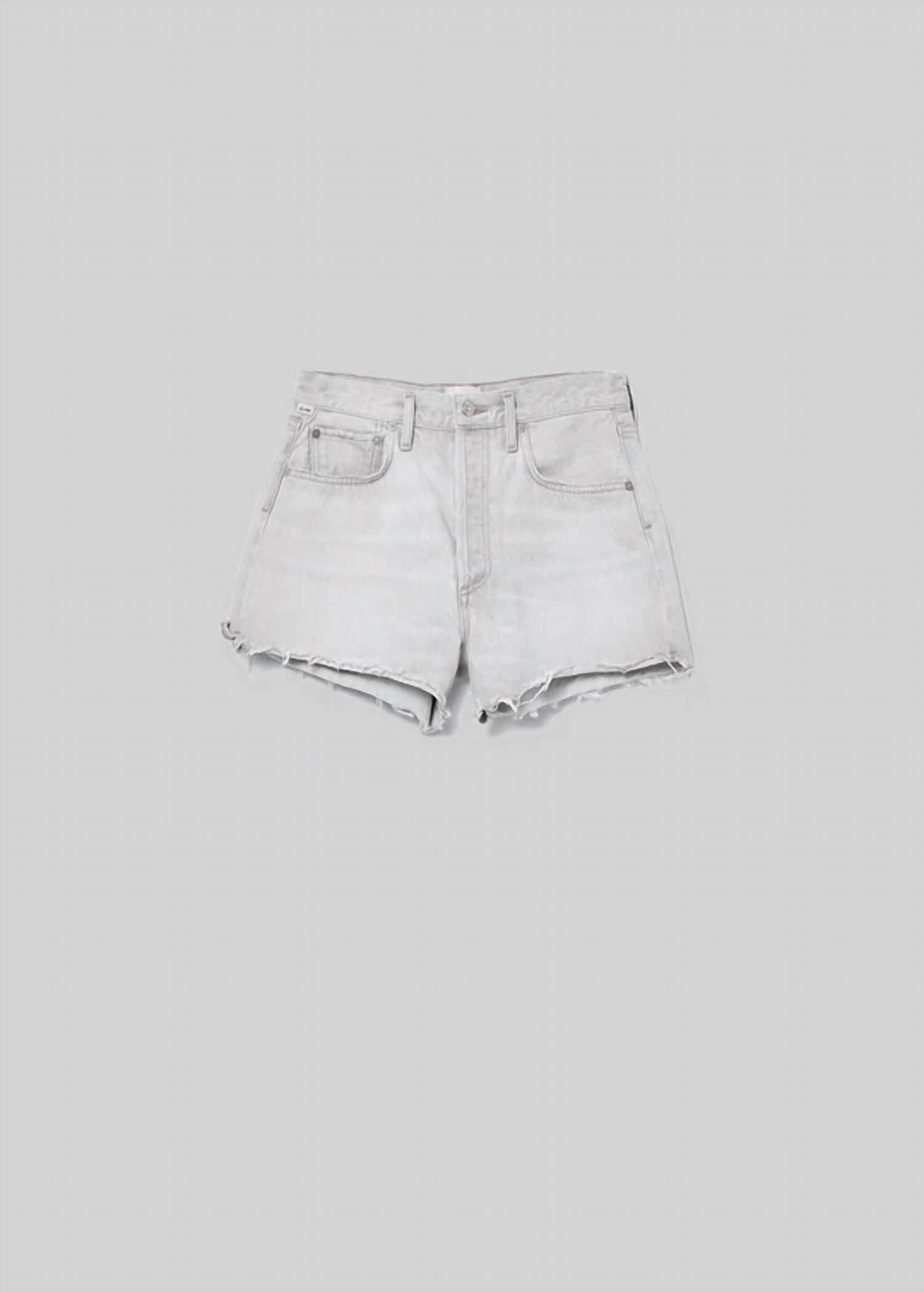 Jean shorts so versatile, you can literally wear them with anything. Elevate your summer wardrobe in chic Comet. Crafted from 100% organic cotton, featuring a mid-rise fit with a 12" rise, 3 1/4" inseam, and a 24 1/2" leg opening. With a solid pattern and convenient pockets, offer a rigid yet easy drape, ensuring all-day comfort. Closure is a button fly. Easy to care for: machine wash cold inside out and tumble dry low. Model is 5'10" and wears a size 27.