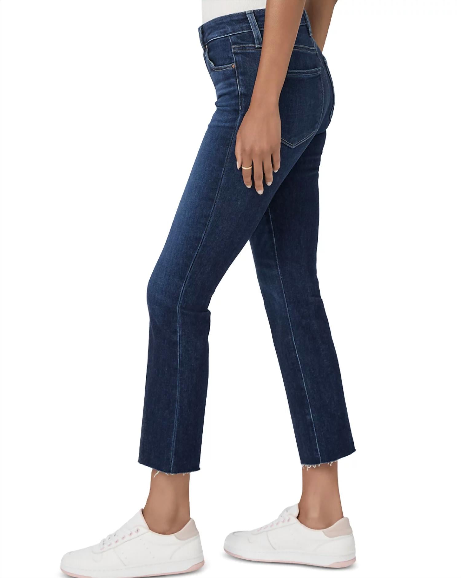 Just add boots! Zip fly with button closure, five-pocket silhouette Contrast stitching, rose gold-tone hardware, belt loops Whiskered, faded Flared-leg silhouette
