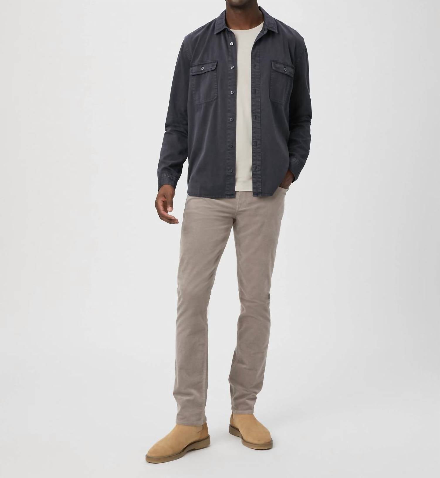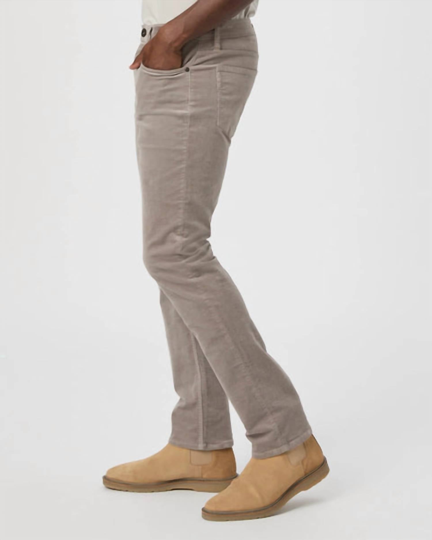 Discover the Lennox Corduroy Pants by Paige, crafted from a comfortable cotton blend with a touch of spandex for flexibility. Designed with a solid ivory cream finish and a slim fit, these pants feature a straight leg style, a 10" front rise, and a 33" inseam, making them a staple for any wardrobe. Closure: Button closure. Care: Machine wash and line dry. Composition: 68% Cotton, 30% Modal, 2% Spandex. Origin: Imported.