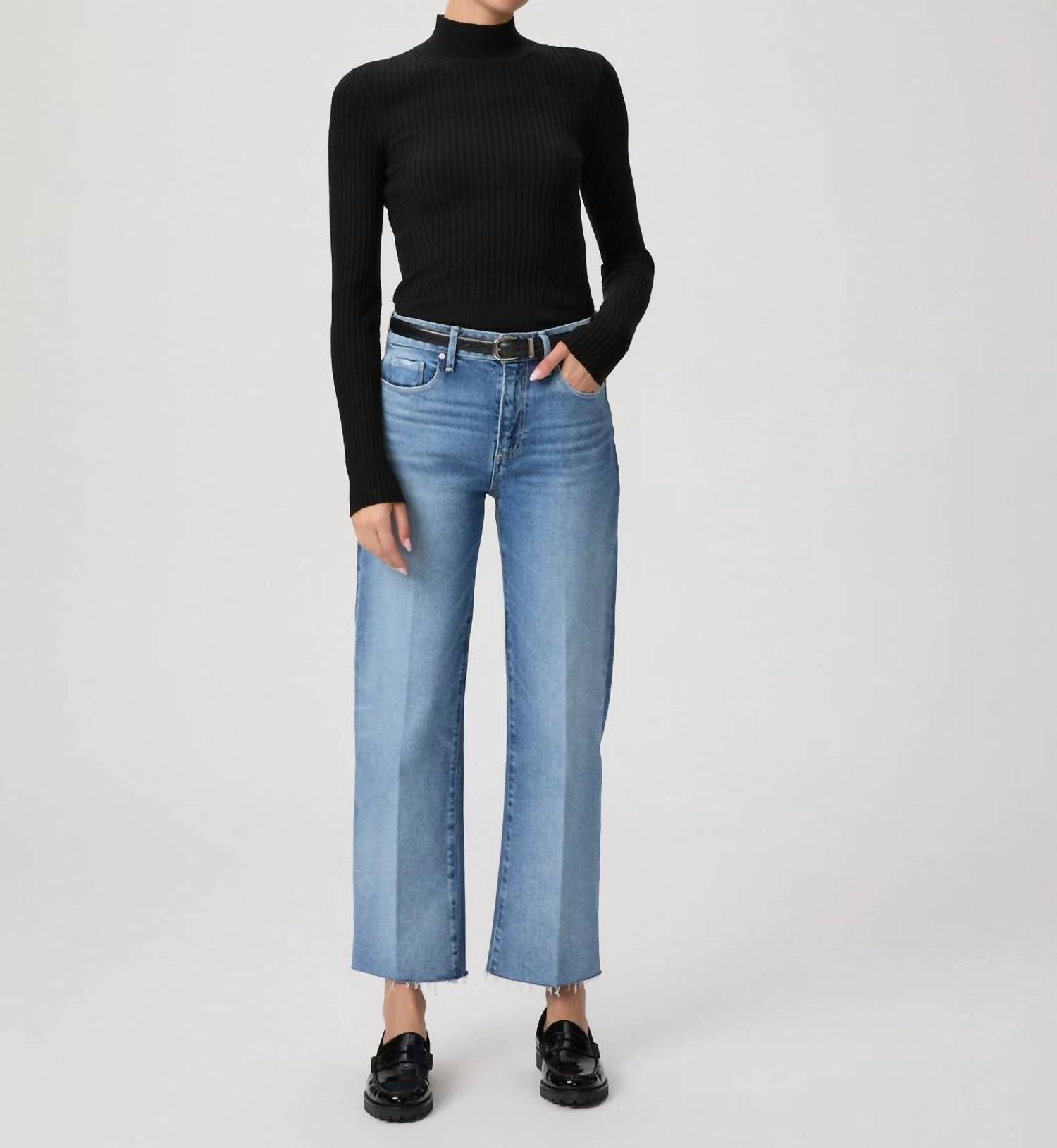 Enhance your wardrobe with this trendy cropped number, designed to blend style and practicality. The comfortable fit allows for easy all-day wear. The perfect length to pair with your favorite mules. Unveil your style effortlessly with the Women's Leenah Ankle Jeans by Paige, crafted from premium denim in a medium wash. These solid-patterned jeans come with a sleek zip closure and boast a mid-rise waist with a 27" ankle length, perfect for any heel height. Featuring a slim fit with a skinny leg design, they offer a flattering silhouette and comfortable fit enhanced by the Paige Vintage fabric's soft, lived-in feel. Care for these versatile jeans is simple: machine wash and tumble dry.