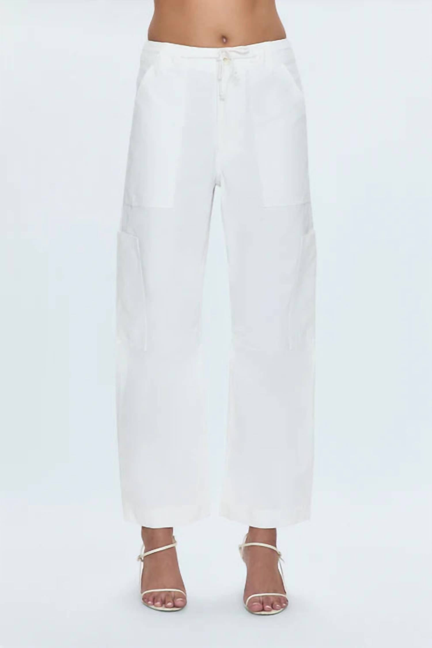 Fit to perfection, we love these high-waist jeans and you will too. Introducing the Sabrina Curved Utility Pants by PISTOLA, designed to elevate your off-duty days with refined elegance. These white, high-rise pants feature an 11.25" rise and a 27" inseam, meticulously crafted from 100% cotton for a durable, structured feel. Designed with a relaxed fit and strategic utility pockets, they offer both functionality and a chic, contemporary edge. Care instructions: Machine wash. Country of origin: Imported.