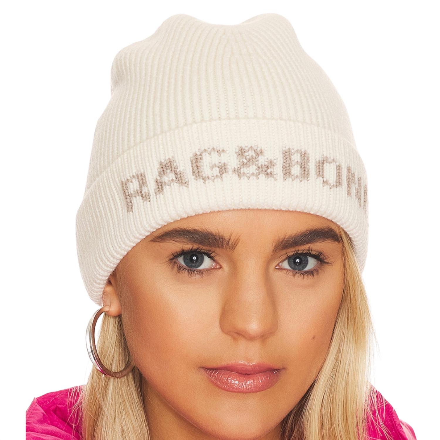Turn heads in this stylish and chic hat. Not only is this accessory a must for keeping the sun out of your face, it will also be the perfect complement to any cute warm-weather outfit. Rag and Bone  Margo Beanie Wool, Nylon, Spandex in Black Multi  Ribbed Beanie  Jacquard "RAG & BONE" Text Turn Back Hem  One Size Length 8"  Bottom Edge Width 9.5"  Dry Clean