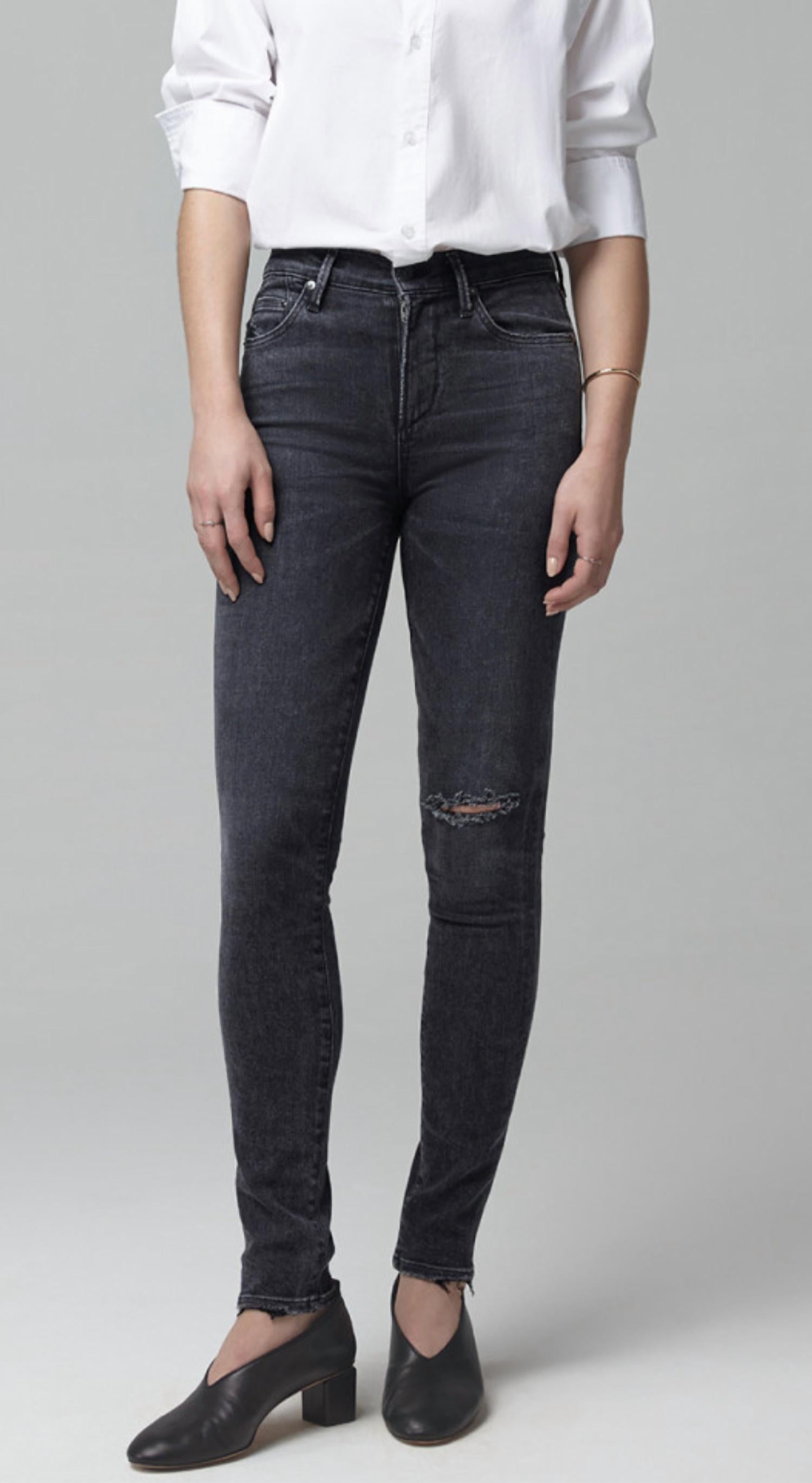 The perfect skinny jeans to wear with your favorite boots this season! Introducing the Rocket Pant by Citizens of Humanity, a sleek staple from the Sculpt Touch Collection designed for women who value both sophistication and comfort. These mid-rise, slim-skinny pants offer a flattering, sculpted silhouette crafted from soft stretch denim that ensures a smooth feel and lasting shape. Featuring a full-length cut that falls just below the ankle, they’re finished with a classic zip fly, button closure, and functional pockets for everyday ease. The subtle black destruction detailing adds a modern edge, making them the perfect mix of polished and effortlessly cool.