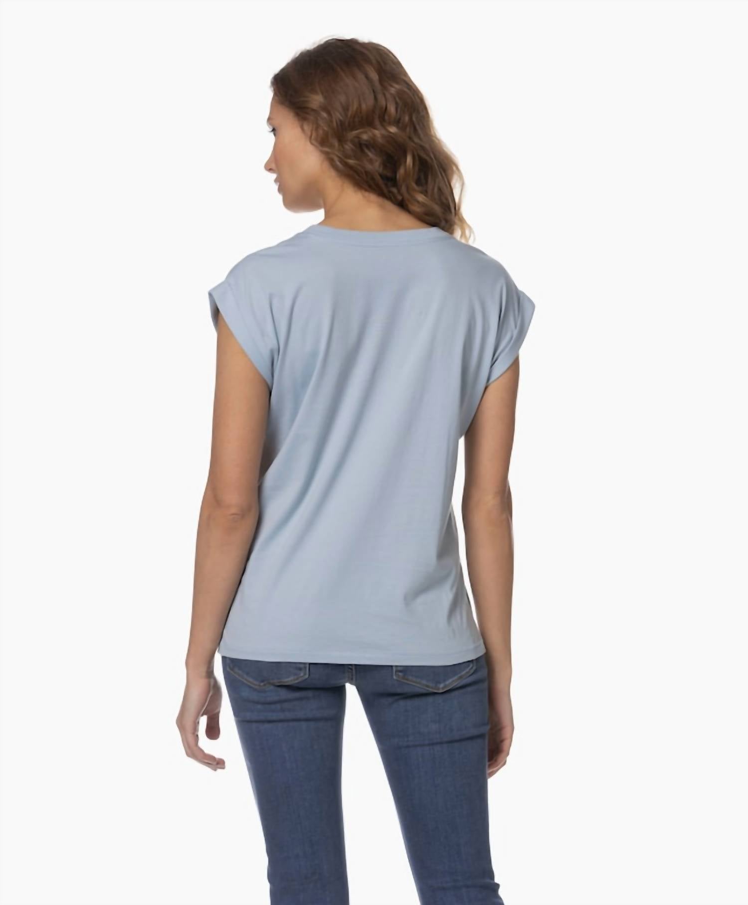 Straight fit. Dolman sleeves. Short sleeves. Sits on the hip. V-neckline. 100% Supima Cotton.