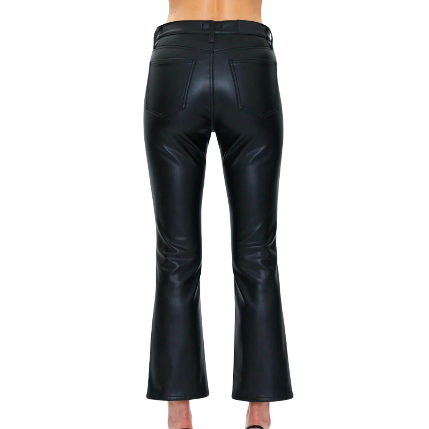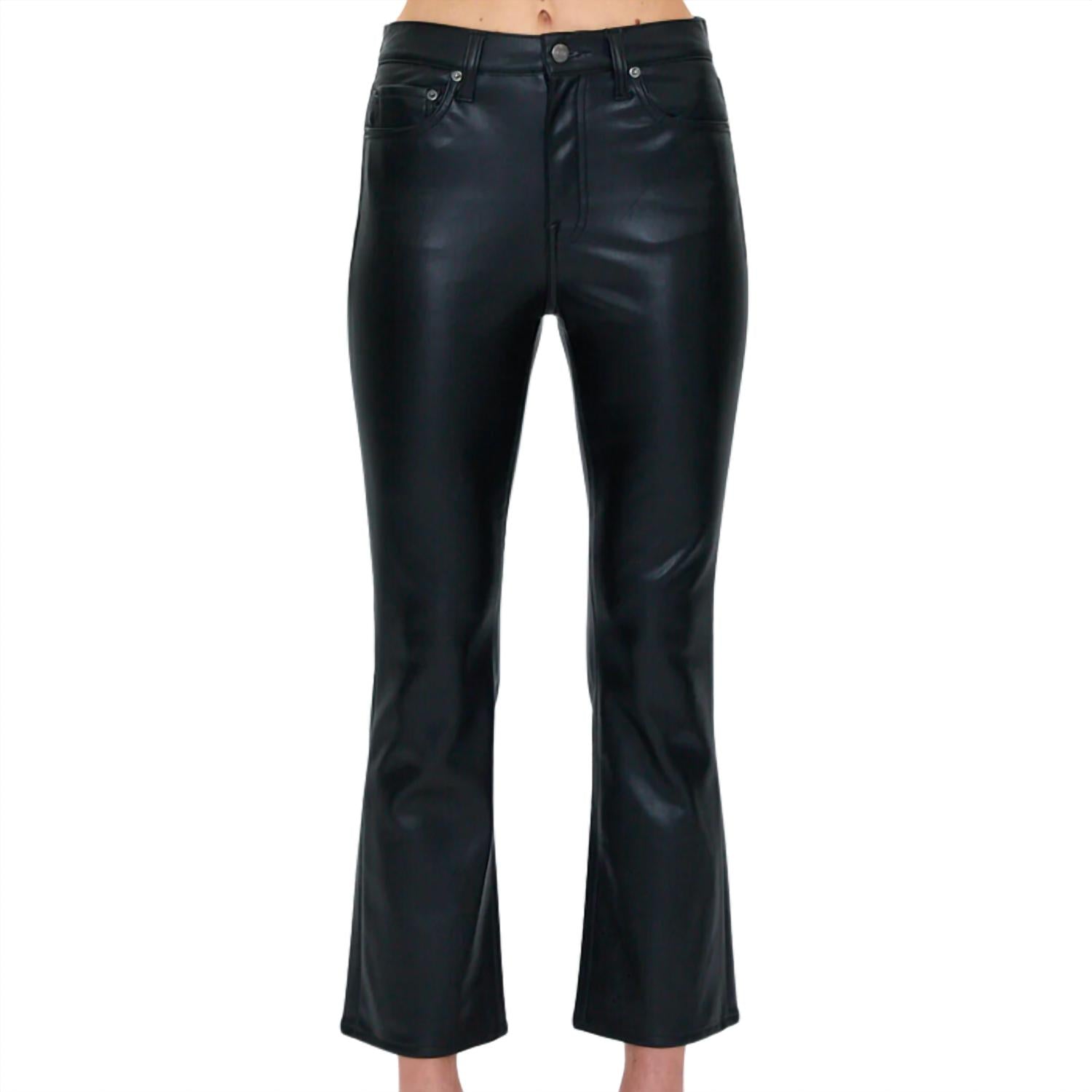 Fit to perfection, we love these high-waist jeans and you will too. Elevate your style with the Pistola Lennon High Rise Crop Boot Pants in a sleek Slate Black color. These buttery-soft pants feature a high rise waist and cropped bootcut leg that flares at the calf, offering a chic and proportional silhouette. Crafted from alternative leather with a stretchy faux leather coating, they boast a zip fly with button closure and functional 5-pocket styling. With an 11” rise, 27” inseam, and a 16.5” leg opening, they promise both style and comfort. Care for these pants by hand washing cold or opting for dry cleaning.