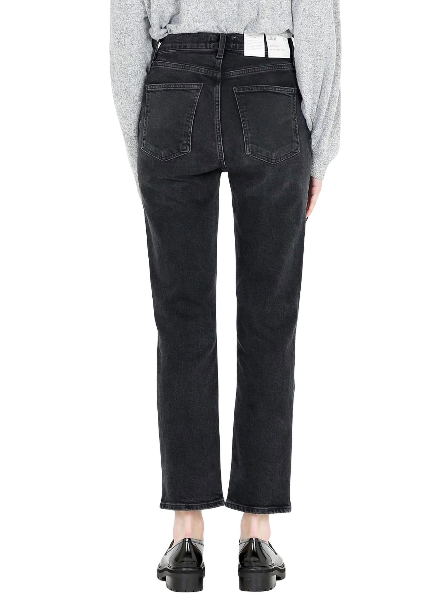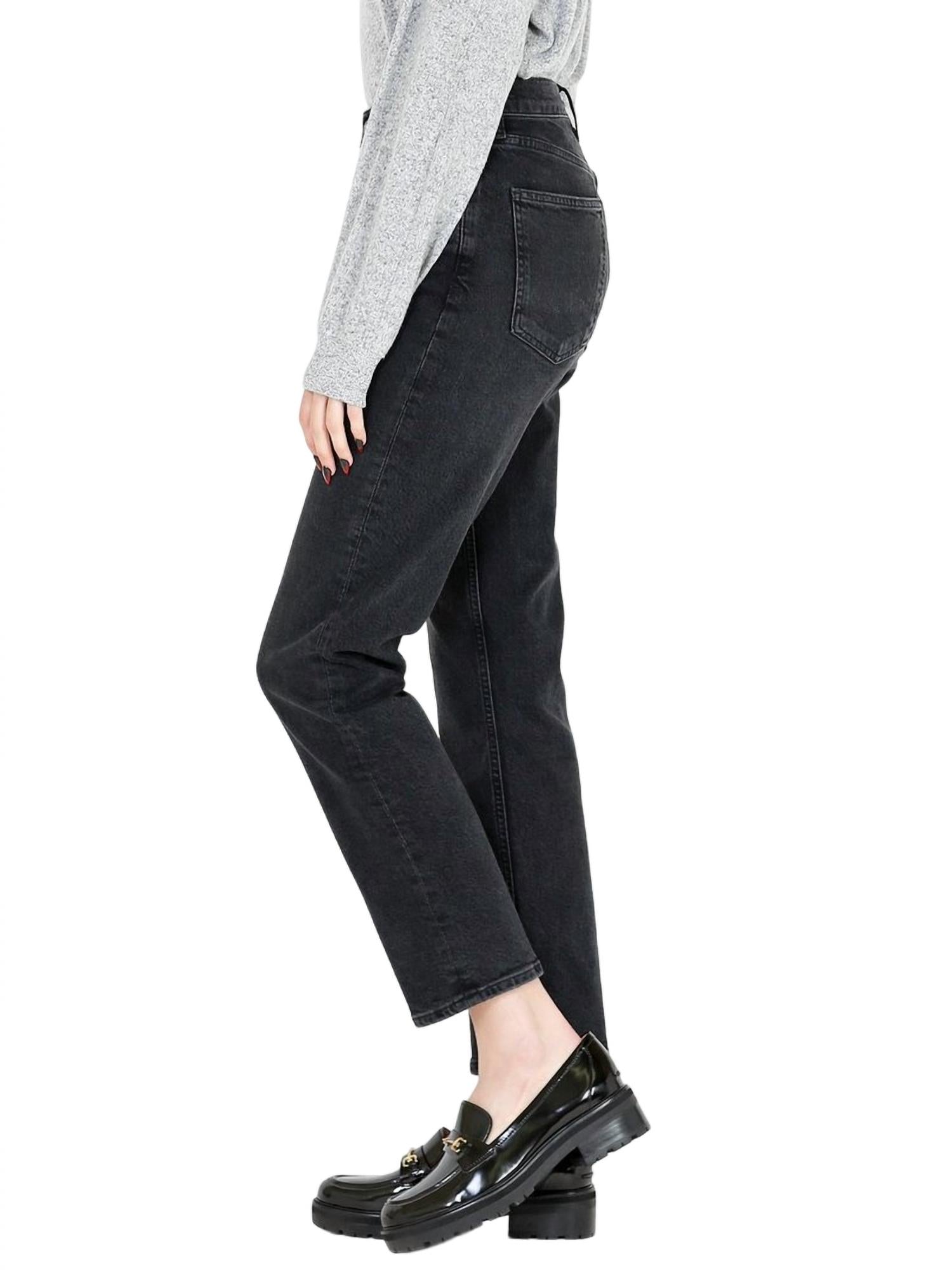 Washed black panoramic wash. Mid rise comfort stretch straight leg, button fly closure. Front rise 11 1/4", inseam: 27 1/2", leg opening: 15". True to size. Machine wash cold. 59% Organic cotton, 40% Viscose, 1% Elastane.