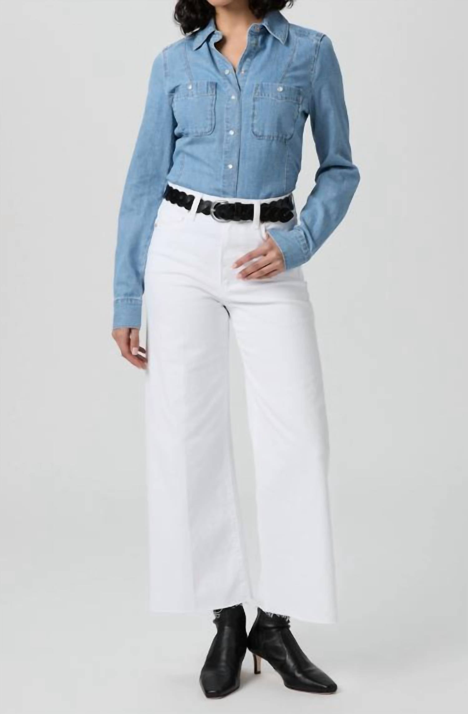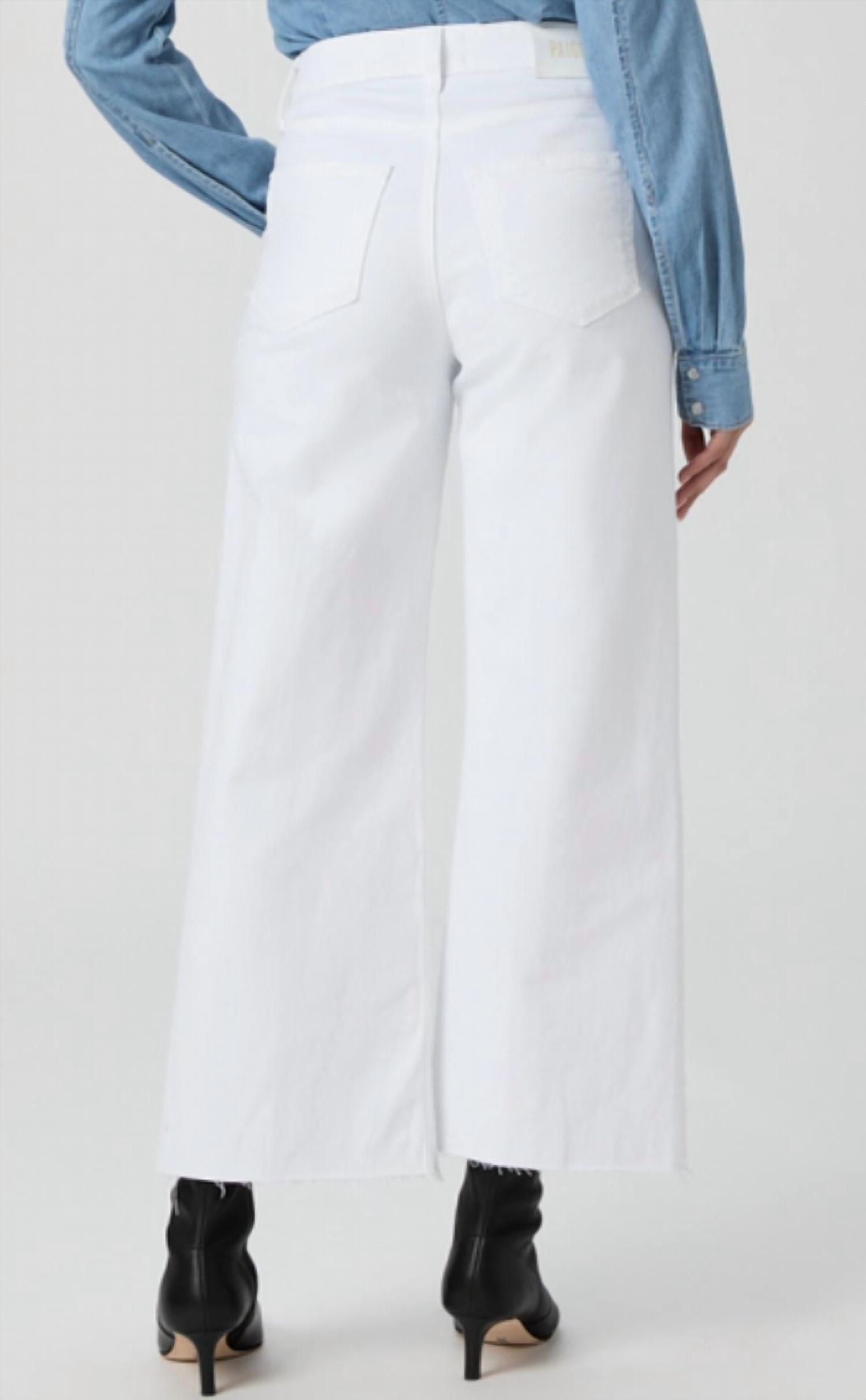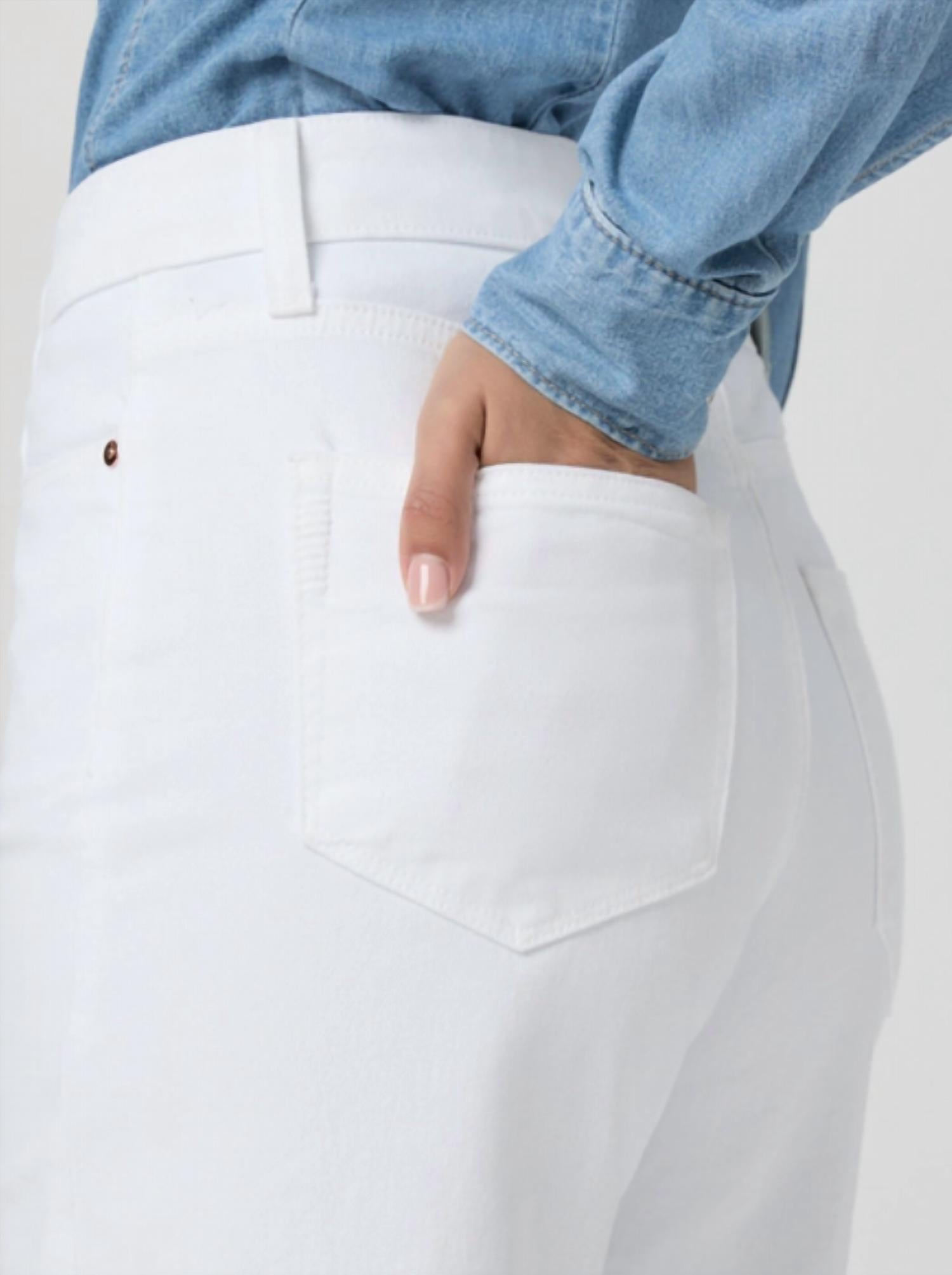 Pair these wide leg jeans with mules, slides or your favorite strappy sandals. Anessa is our modern high-waisted wide leg with a slightly relaxed fit and an ankle-length silhouette for an effortlessly chic look. This pair comes in crisp white with a raw hem and is crafted from comfort stretch denim with plenty of coverage and the perfect amount of stretch.