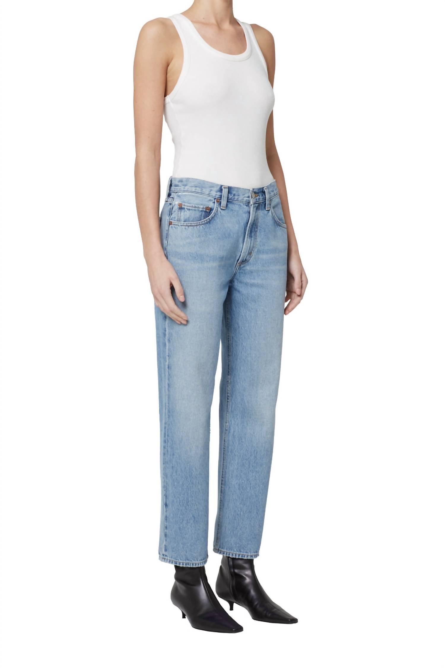 Everyone needs a good pair of skinny jeans and this is a style you'll keep reaching for no matter the season. Elevate your denim collection with the Women's Valen Jean by AGOLDE, featuring a stylish mid-rise vintage straight design with a flattering square top block. Crafted from 100% regenerative cotton, these jeans offer a super-soft feminine hand feel in a non-stretch textured material. Boasting a high rise of 11", an inseam of 28.5", and a 15" leg opening, these jeans deliver comfort and style. Made in Turkey, they feature a zip closure and include pockets, combining functionality with streetwear-inspired aesthetics. For care, machine wash cold inside out with like colors and tumble dry low.