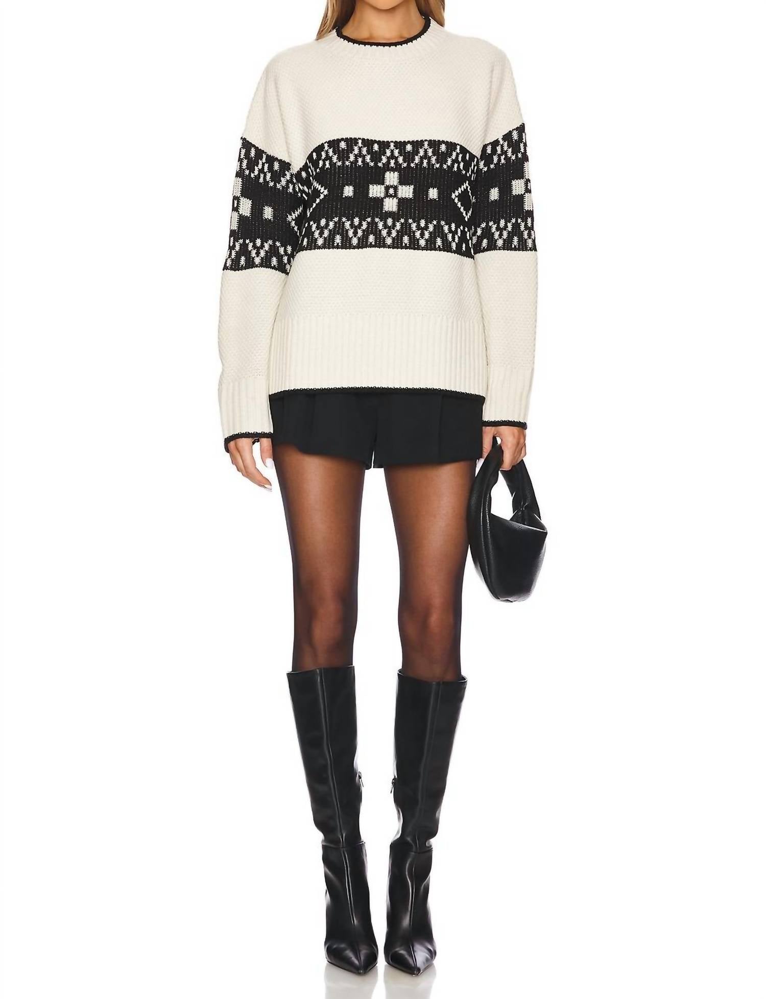 Experience the perfect blend of comfort and style with this trendy crew neck sweater, designed to effortlessly elevate your wardrobe. Pair it with your favorite denim and loafers for the perfect look. Elevate your casual wardrobe with the Lenni Crewneck Sweater by PISTOLA, a cozy choice featuring long sleeves and an oversized fit for unparalleled comfort. Crafted from a blend of 85% Acrylic and 15% Wool, with contrasting 100% Nylon accents, this sweater spotlights a heritage-inspired fair isle pattern in a warm off-white hue. Made for easy styling, it offers a pull-on closure and measures a length of 26 1/2 inches. Care: Machine washable. Model is 5'9" and wears size Small.