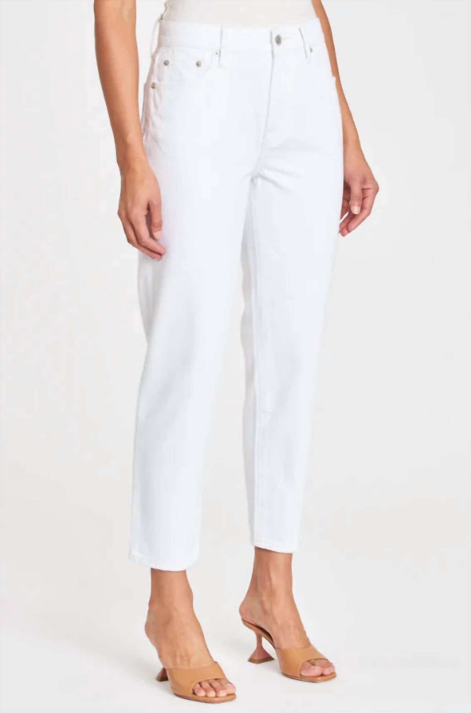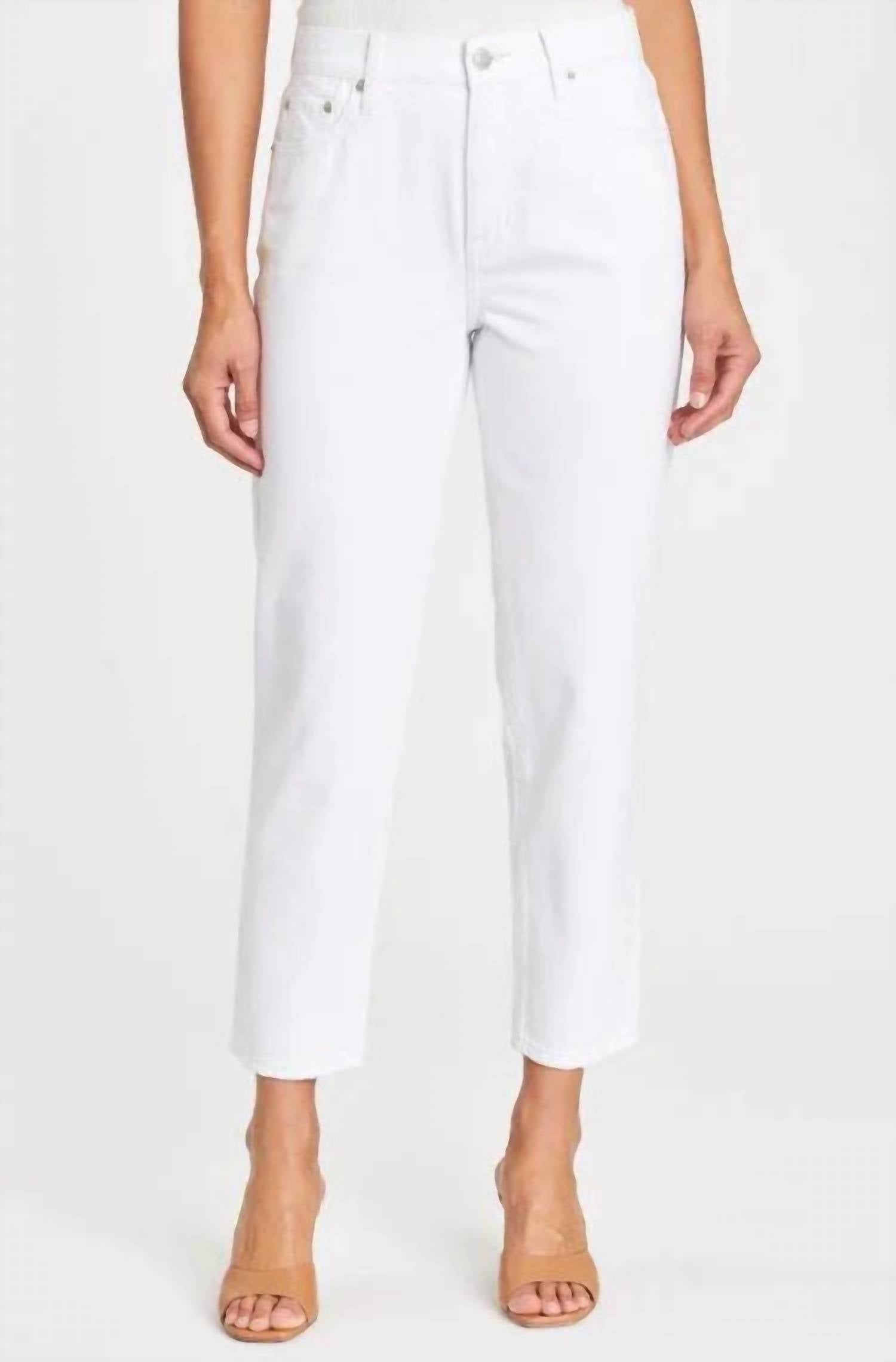Comfortable and stylish, we love this cropped jean for all of the obvious reasons. Introducing the Women's Presley High Rise Cropped Pants by PISTOLA, a nostalgic nod to '90s fashion with a modern twist. These relaxed fit jeans feature a clean white Snowstorm wash, offering a solid, unblemished look without distressing. Designed with a bootcut leg, they provide an effortless streetwear vibe, perfect for your spring vacation wardrobe.