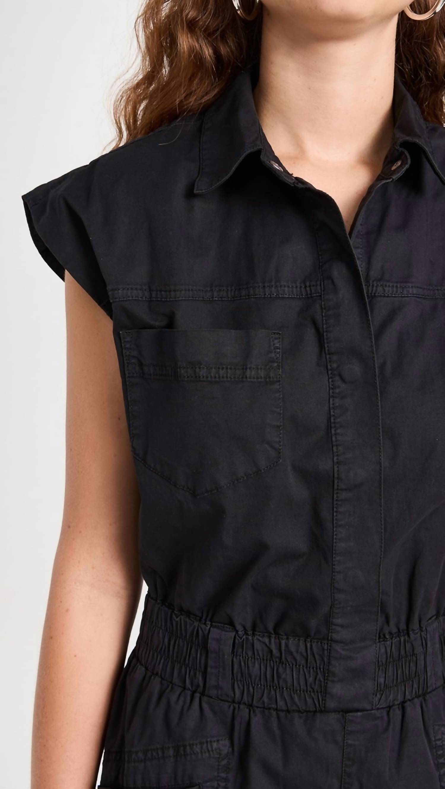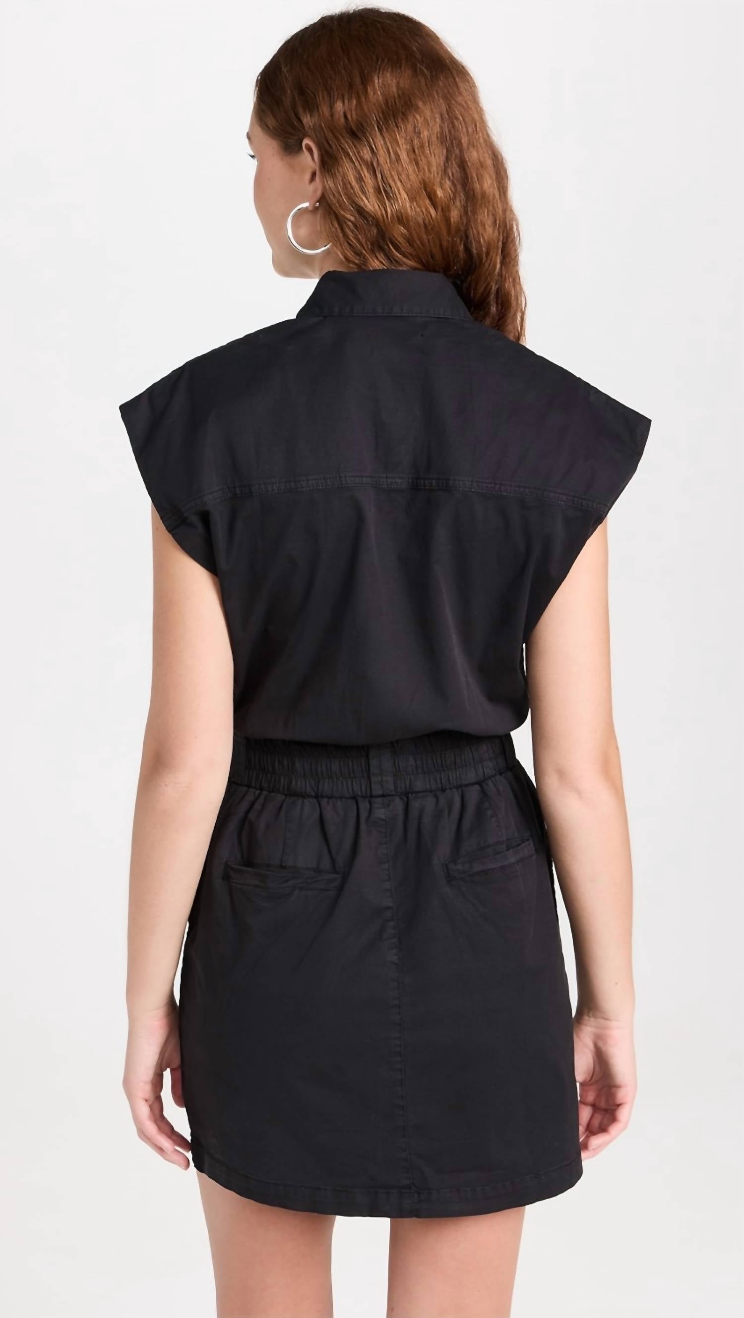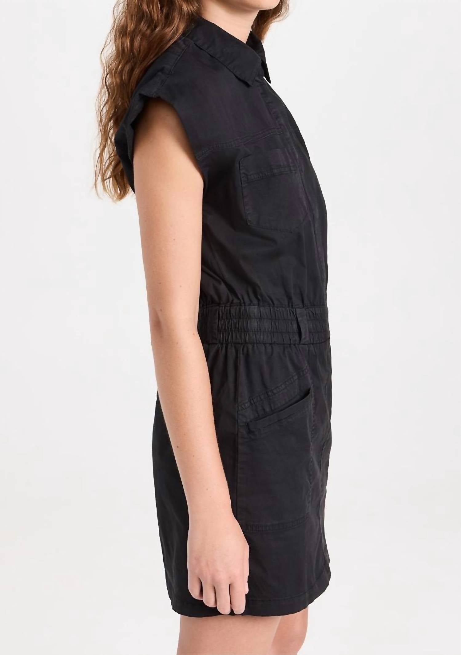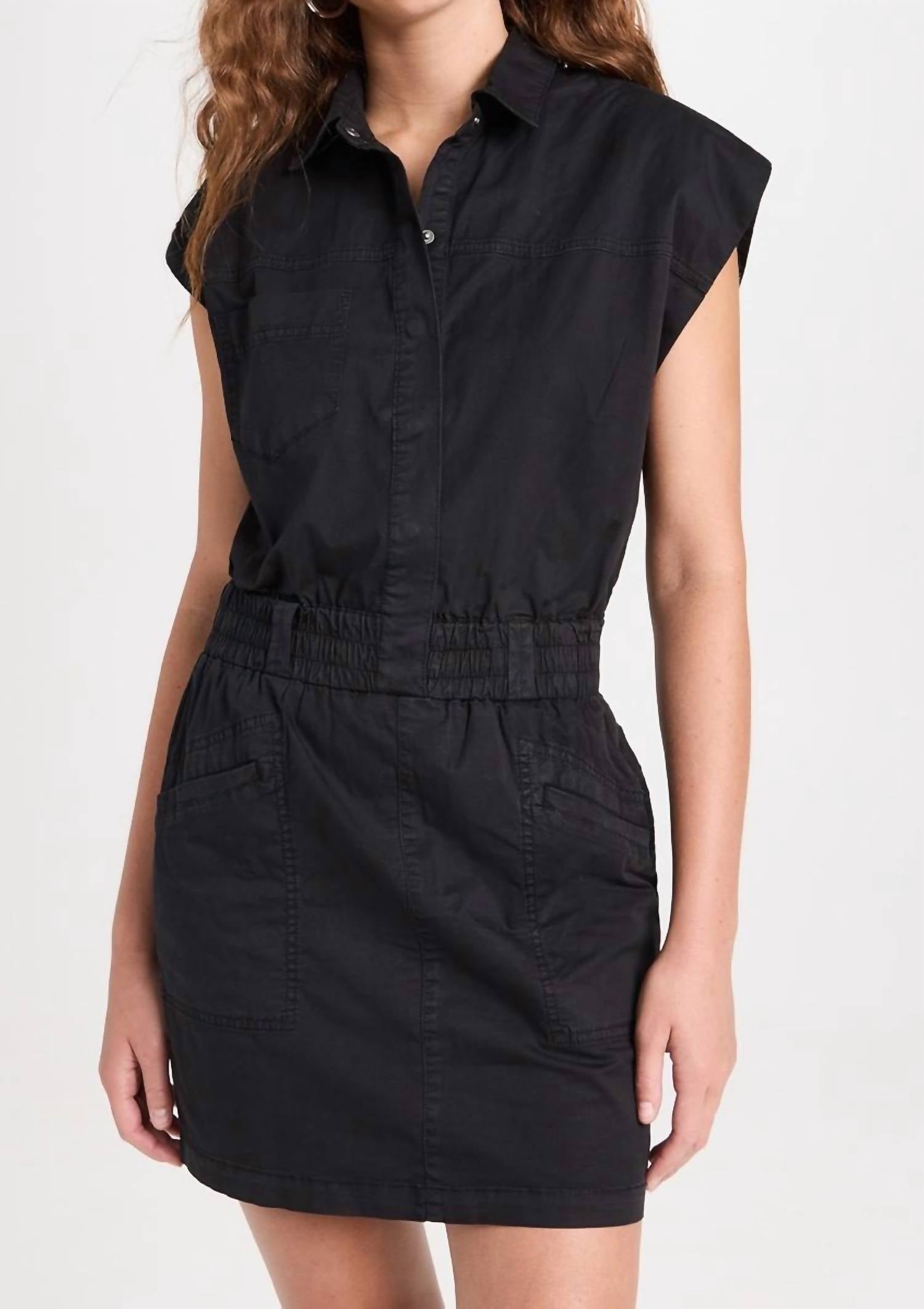 The kind of easy and flattering dress you'll be reaching for all season long. Meet the Rosie Mini Dress by PISTOLA, a versatile piece in the chic 'Fade To Black' shade. This mini dress features cap sleeves with padded shoulders and a smocked elastic waistband for a flattering silhouette. Made from a cotton blend with 98% cotton and 2% spandex, it measures 33.75 inches in length and includes convenient welt and patch pockets. With a button closure and a collared neckline, it's crafted for minimalist style and is imported from China, making it perfect for travel occasions. Care instructions recommend a machine wash to maintain its quality.