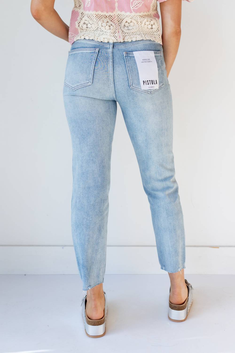 Fit to perfection, we love these high-waist jeans and you will too. Step out in style with the Monroe High Rise Crop Jeans by PISTOLA, crafted in a Monet Vintage light wash for a fresh, casual look. These women's high-rise jeans feature a slim fit with a straight leg and a trendy frayed hem, boasting a sleek zip closure. Made from 95% Cotton, 4% Elasterell, 1% Spandex, they offer both style and practicality with pockets for convenience. With a 26.5" inseam and a 10.5" rise, these jeans are perfect for summer events or streetwear outfits, and they're best maintained with hand washing and laying flat to dry.