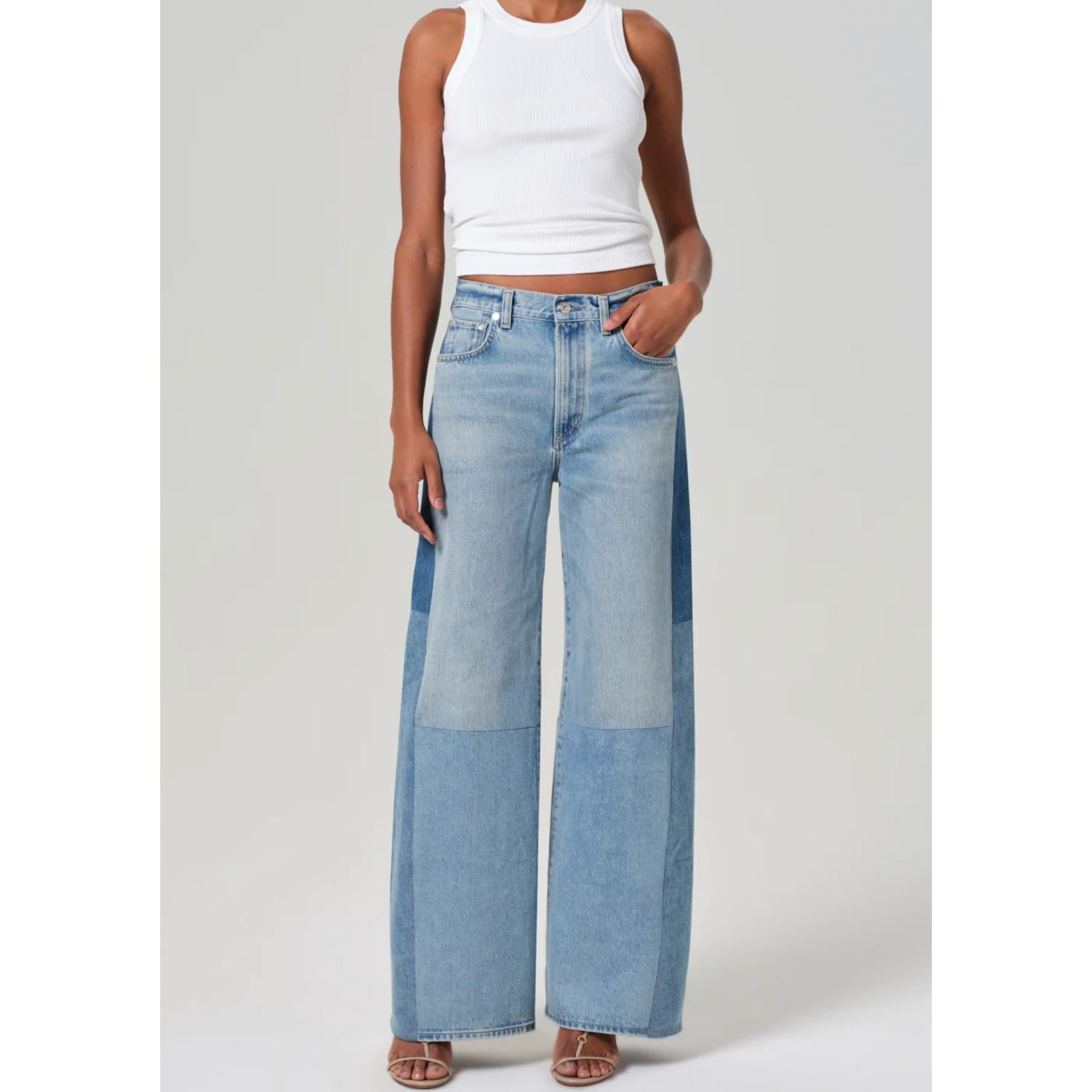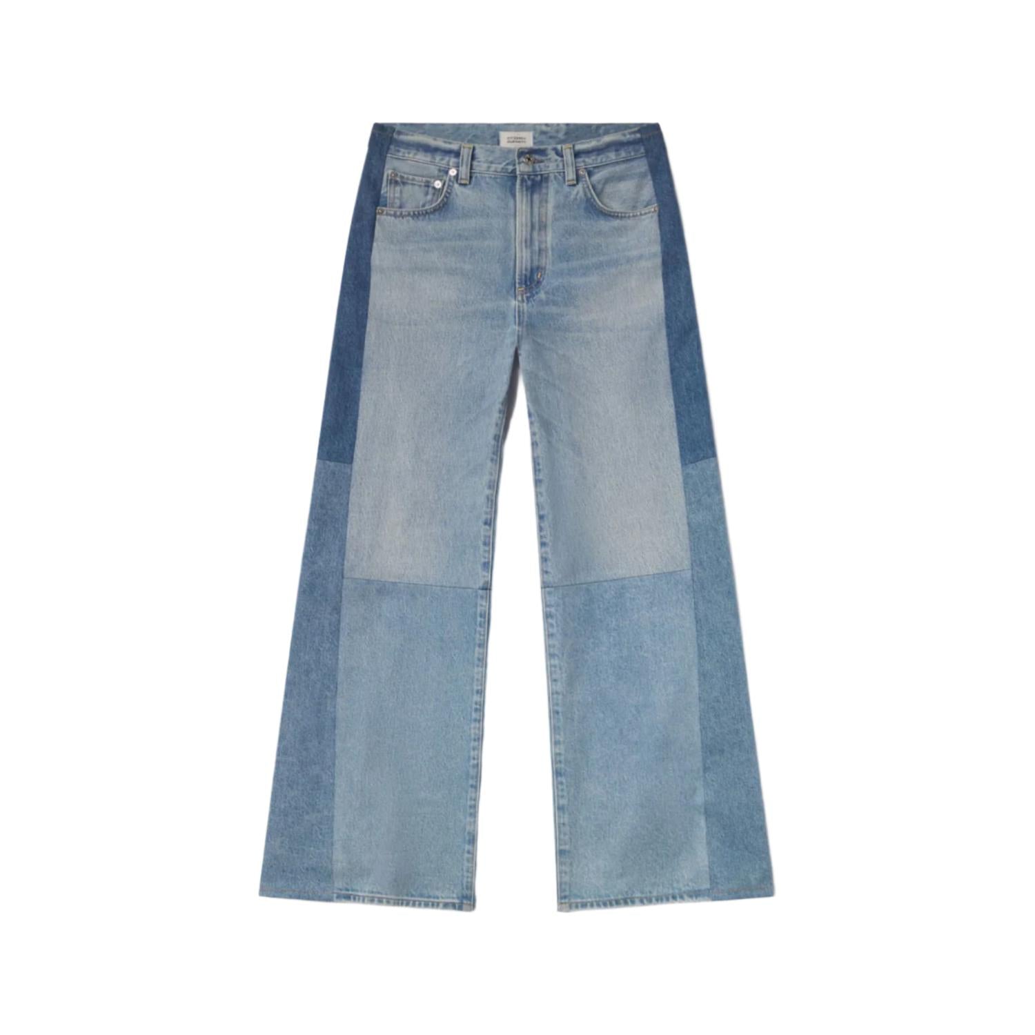 Just as cute as they are comfortable. Showcasing a vintage-inspired wide leg and a medium wash in the color Intrigue. Crafted from 100% regenerative cotton, these jeans offer a comfortable fit with an 11.75" rise, 32" inseam, and a generous 24" leg opening. With a zip closure and pockets, they are both practical and stylish. Made in the USA with imported materials, these jeans are easy to care for: machine wash cold inside out and tumble dry low. Model is 5'10" and wears size 27.