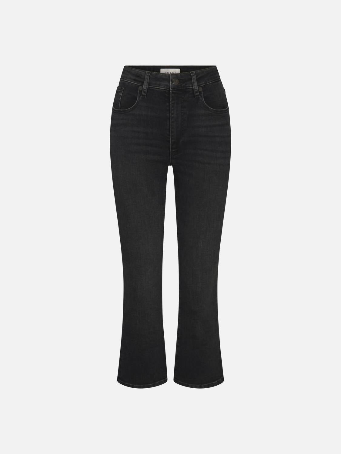 Fit to perfection, we love these high-waist jeans and you will too. FRAME presents the Reboot Cropped Jeans in Starship, a high-rise, solid color necessity for any wardrobe. These jeans feature an 11" front rise and 27" inseam, creating an ultra-stretch, bootcut leg that gracefully sits above the ankle. Composition includes 49% Cotton, 21% Pre Consumer Recycled Cotton, 17% Post Consumer Recycled Polyester, 11% Modal, and 2% Elastane for superior comfort and fit. Closure: Button closure. Care: Machine wash cold, tumble dry. Perfect for a vacation or special occasion like Valentine's Day, these jeans are designed for women who love effortless style with a maximalist touch.