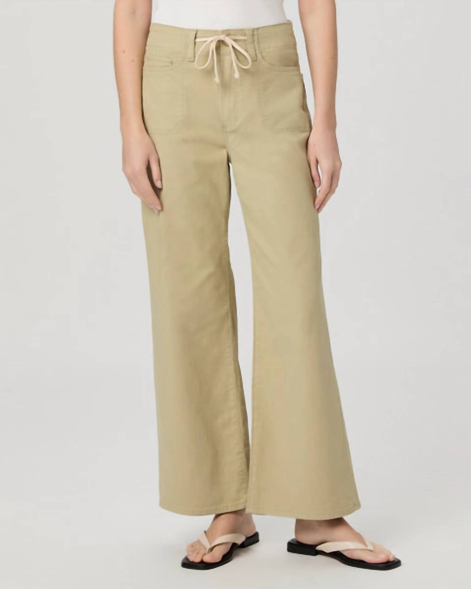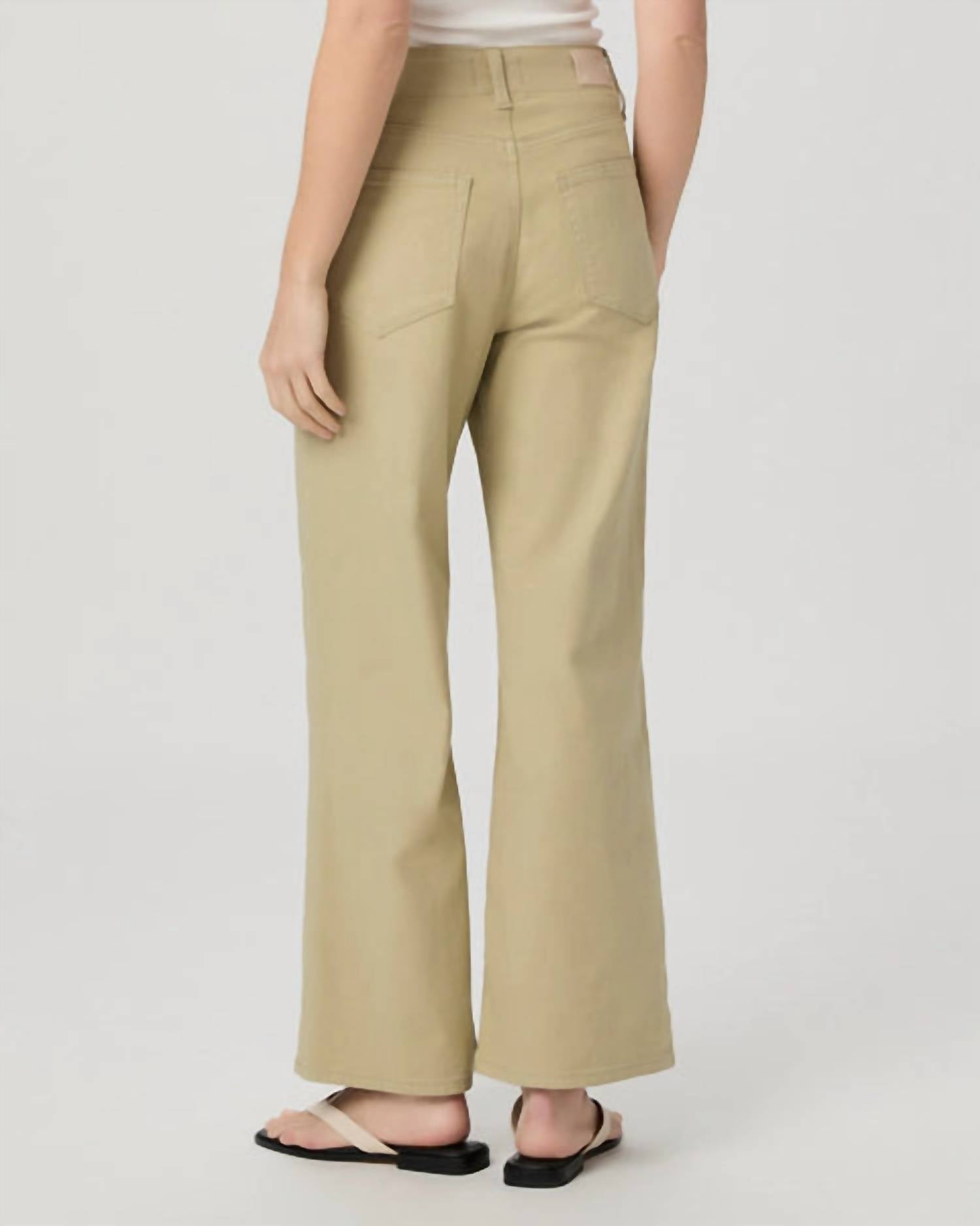 Elevate your streetwear wardrobe with the Ari Wide Leg Pant by Paige, designed in a vintage pale olive hue for a touch of modern sophistication. These women's high rise pants feature a relaxed fit and a flattering ankle-length inseam of 29 inches, perfect for casual spring outings. Made from super soft denim, the pants come with functional utility pockets and a convenient side zipper closure for added practicality. Care for them is simple with machine wash and tumble dry instructions, ensuring ease in maintaining their timeless style.