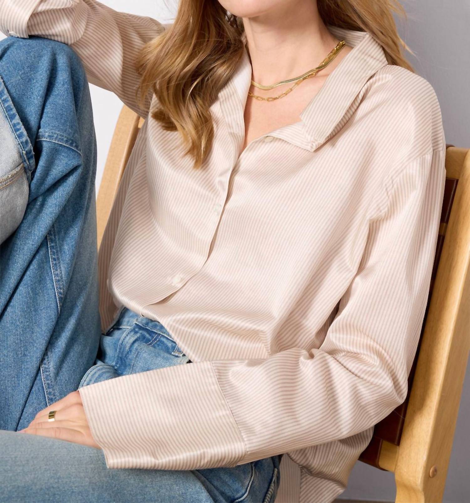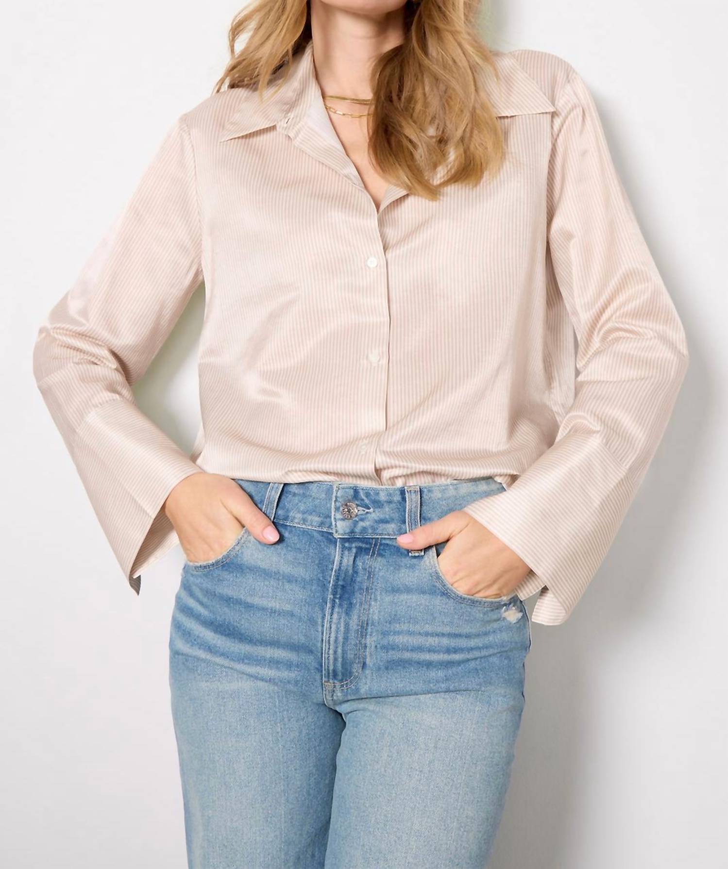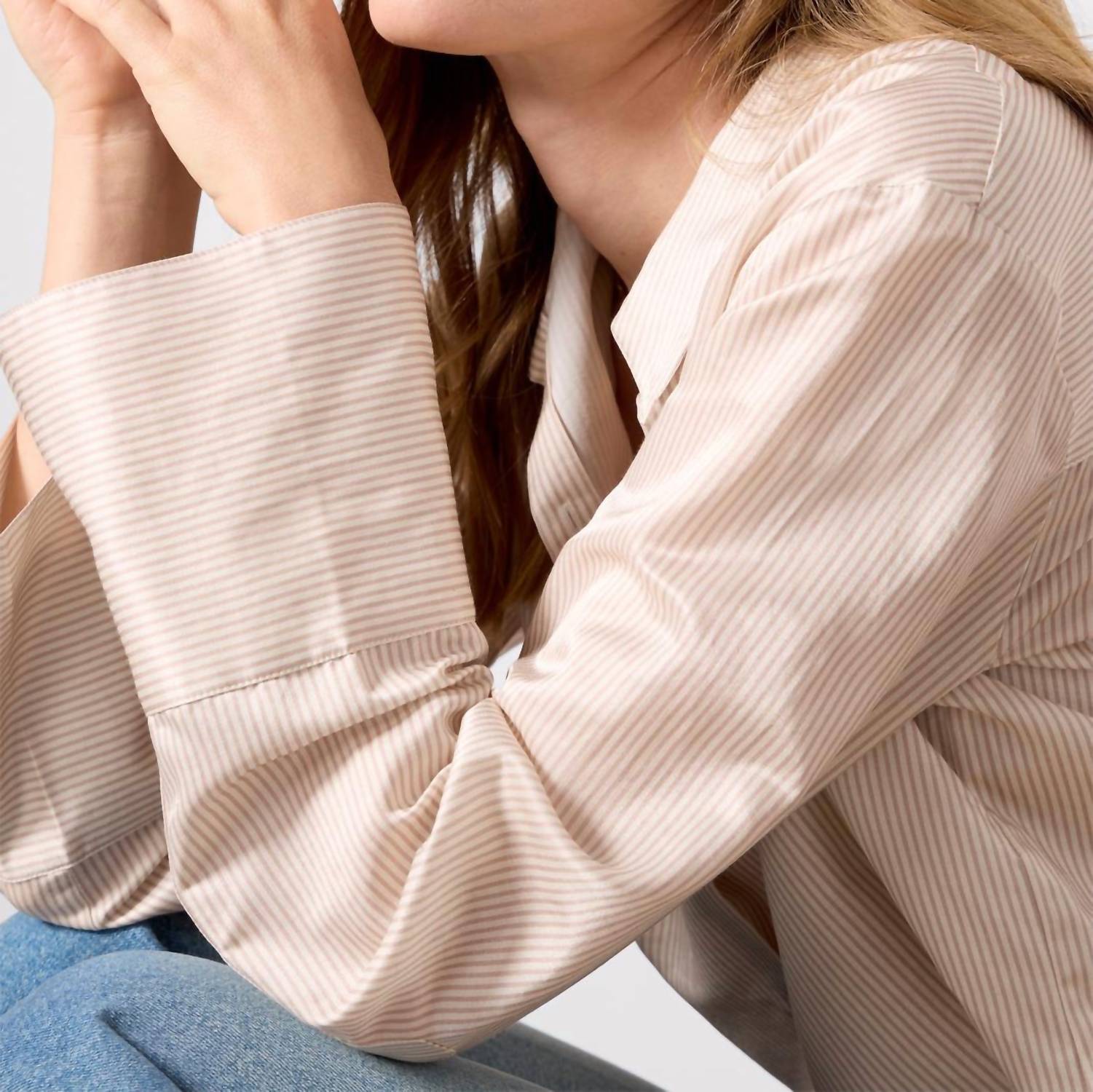 This button down shirt is comfortable yet polished. Introducing the Women's Camilia Shirt by Citizens of Humanity, a sophisticated piece designed for contemporary vacation and streetwear looks. This long sleeve shirt, featuring a striking stripe pattern in beige, is made from an ultra-smooth cotton blend providing a luxurious feel. With a classic collar neckline and a convenient button closure, it offers a refined touch to any wardrobe. Perfect for the spring season, this piece complements everything from trouser-style denim to sleek cargos.