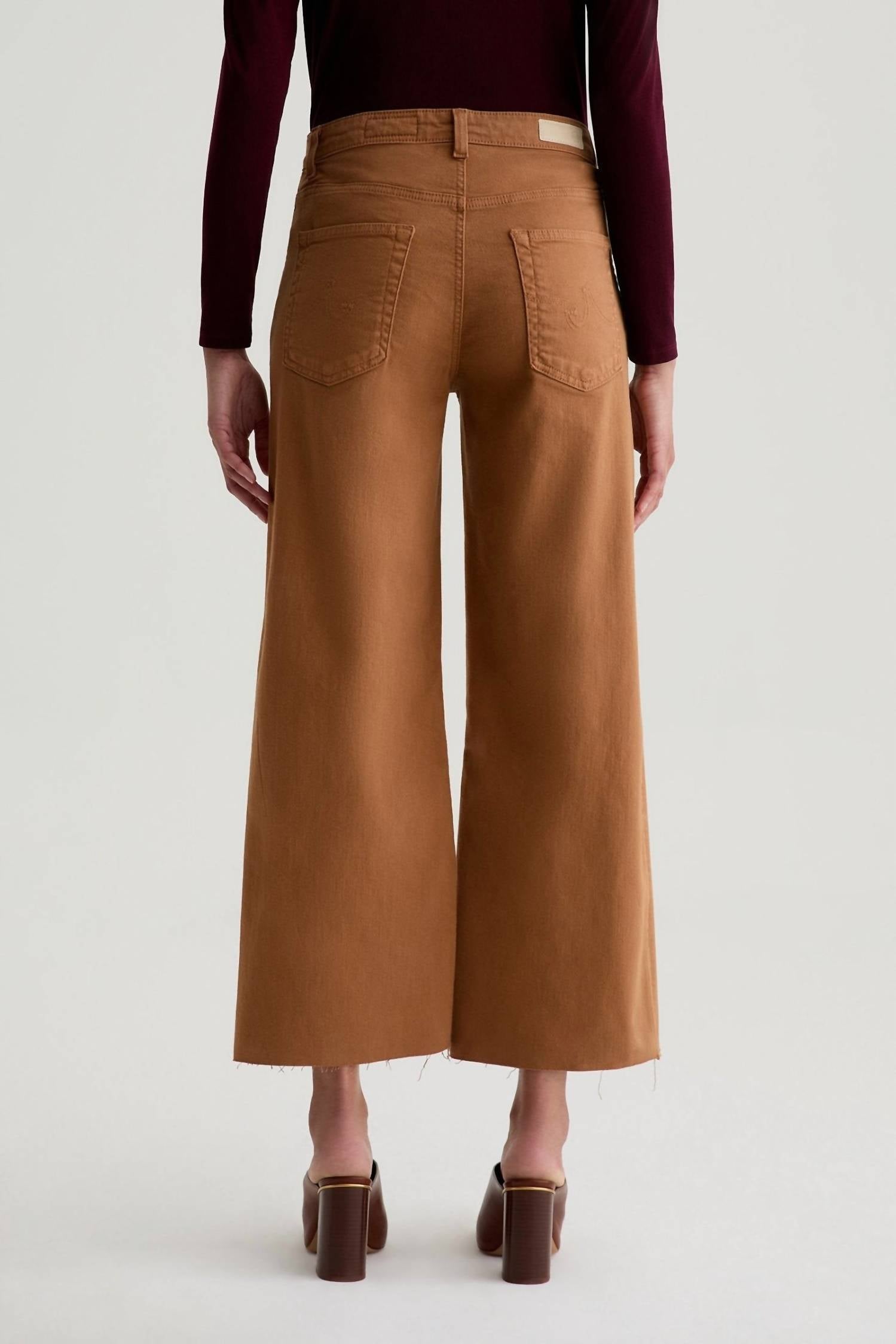 Just as cute as they are comfortable. Meet the Saige Wide Leg Crop Jean by AG Jeans in a warm Ginger hue, perfect for adding boho chic flair to your fall wardrobe. With a high-rise waist and wide-leg style, these jeans are crafted from 12 oz. Classic Comfort Stretch Denim, composed of 98% Cotton and 2% Spandex Elastane, and imported. The design includes a zip closure and thoughtful details like raw hems, an angled yoke, and eco-friendly construction using AG Vapor Washâ„¢ technology. Care is straightforward with machine washing, ensuring these jeans are as practical as they are stylish.